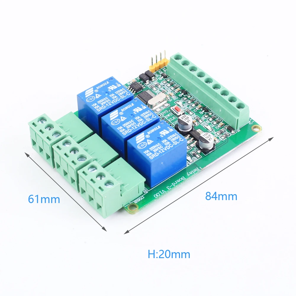 1. Описание: Это 3-битный релейный модуль ModbusRTU. Он поддерживает интерфейс связи RS485 и интерфейс связи TTL, 3 входа и выхода. 2. Особенности: 1>. Серийная связь Modbus 2>. Релейный переключающий выход 3>. Удобное управление 3. Описание: 1>. Название продукта: 3 Бит ModbusRTU триггерный релейный модуль 2>. Рабочее напряжение: 12 В постоянного тока 3>. Рабочий ток: 1A 4>. Рабочая температура:-25 ℃ ~ 85 ℃ 5>. Рабочая влажность: 5% ~ 95% относительной влажности 6>. Размер: 84*61*20 мм 4. Инструкция Modbus RTU: 1>. Скорость передачи данных: 9600 8 NONE 1 2>. Шестигранная отправка, шестигранная получение 5. Посылка: 1>.1 шт 3 Бит модульный релейный модуль