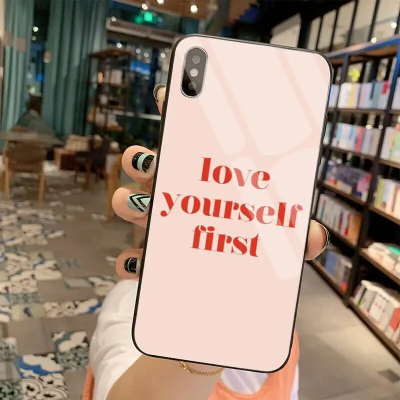 Роскошный чехол с надписью Love Yourself First сделай сам закаленное стекло для iPhone 11 Pro XR - купить