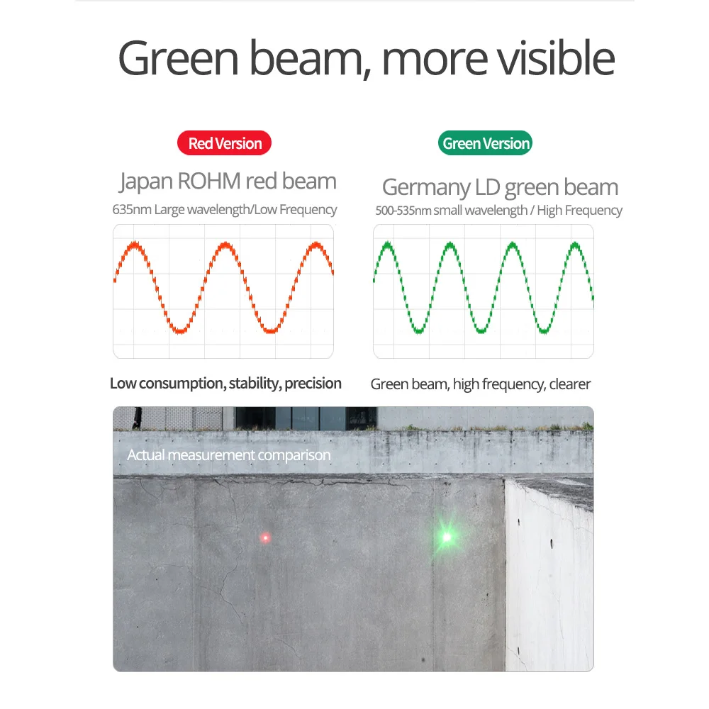 | Тип лазера | 635 нм,<1 мВт | 635 нм,<1 мВт | 635 нм,<1 мВт | 500-535нм,<1 мВт |