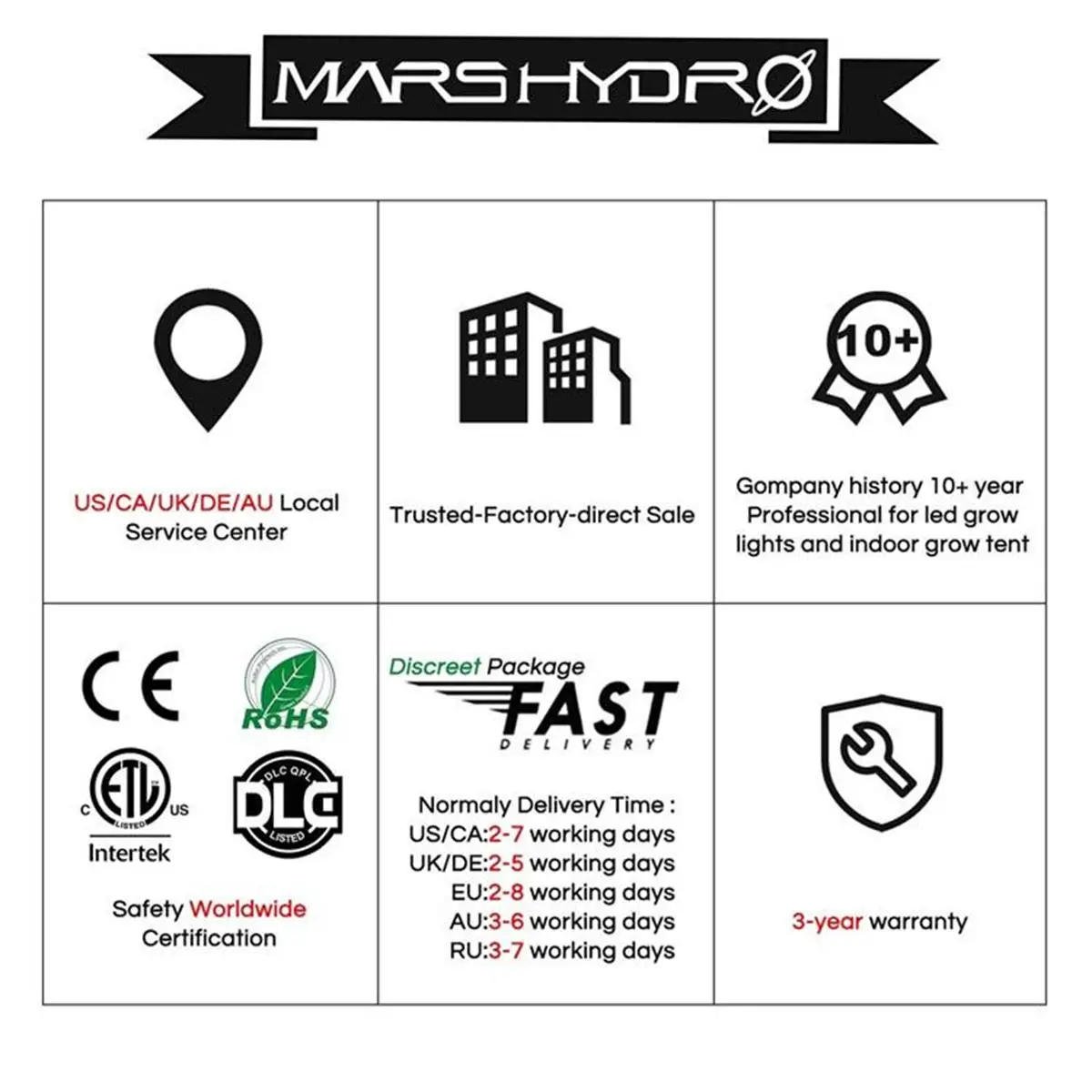 1. Являются ли эти товары аутентичными Mars Hydro? О: Да, они 100% настоящие и Аутентичные Mars hydro. Мы напрямую получаем их с завода с отличным качеством и конкурентоспособной ценой более 7 лет. 2. Иногда я выключаю светильник, он не может быть полностью погашен, это нормально? Ответ: это нормально, не может повлиять на работу светильник, просто из-за разницы в напряжении, если вы не возражаете, можете отключить его, когда вы не используете его. 3. Что я могу вырасти с вашими светодиодными лампами? Отлично подходит для всех этапов? Re:Mars lights отлично подходит для всех типов растений, таких как помидоры, салат, перцы, медицинские растения, травы, бонсай, фрукты и т. д. Наши лампы могут использоваться на всех этапах выращивания: от рассады до Вега до цветения и сбора урожая. Применение: Сеялка/разведение/Вег/цветок/для всех этапов посадки/зеленые овощи/Цветочные растения/фруктовые растения/травы/Медицинские/Мясные растения/Гидропоника/садоводство/Комнатные растения/парниковое освещение /Культура горшка/Ферма/водорастворимое разведение/Выращивание трубопровода/Выставка/домашний сад/Бонсай/дом/коммерческие культуры/проект/личный рост/городские и университетские исследования и т. Д. 4. Какой ваш урожай? О: многие факторы влияют на рост растений, таких как спектр, номинальное значение, реальная мощность. Многие производители говорят, что 30-50 ватт на квадратную ногу-это идеальная фигура для получения достойного урожая, когда они выращивают медицинские растения. Поэтому, пожалуйста, с надписью «don't be в заблуждение высокого питания со светодиодом, но не обращайте внимания на реальные Потребляемая мощность СИД растет светильник. 5. Для больших площадей мне следует использовать одну большую панель или несколько средних и малых огней? О: использование нескольких светильник s позволяет лучше распределять интенсивный светильник в большем пространстве для выращивания вместо того, чтобы иметь все более высокий светильник интенсивности, концентрированный только в одной области, в то время как внешние края никогда не получают интенсивный светильник. 6. Могу ли я выращивать растения с помощью HPS вместе с светодиодный? Ответ: Да, вы можете, с соотношением светодиодный и HID/HPS 2:1 или 1:1, вы можете получить лучший растущий результат, большие и более качественные почки. 7. Если мне не нравится светильник, можете вернуть его бесплатно и получить полный возврат средств? Ответ: согласно нашей новой политике возврата, если светильник сам по себе сломан, вы можете вернуть его бесплатно. Если вы вернете светильник по личным причинам, мы оплачиваем только половину стоимости доставки. И за все возмещение, мы не можем позволить себе оплату за перевод. 8. Товар доставлен, но я не получил его, как мне это сделать? О: если адрес доставки верен, пожалуйста, свяжитесь с вашим сервисным центром доставки с номером отслеживания. Потому что мы в Китае, что мы не можем связаться с вашим местным центром обслуживания. Если они не могут помочь, пожалуйста, отправьте нам свой чехол и «неподписанный сертификат», обратите внимание, что ваше имя и дата должны быть написаны вашим почерком. И тогда мы немедленно обратимся в почтовое отделение. Это займет 7 дней, чтобы получить ответ, мы отправим вам отзывы, как только мы будем в курсе. 9. Рекомендации по температурам ламп: Re: температура окружающей ср