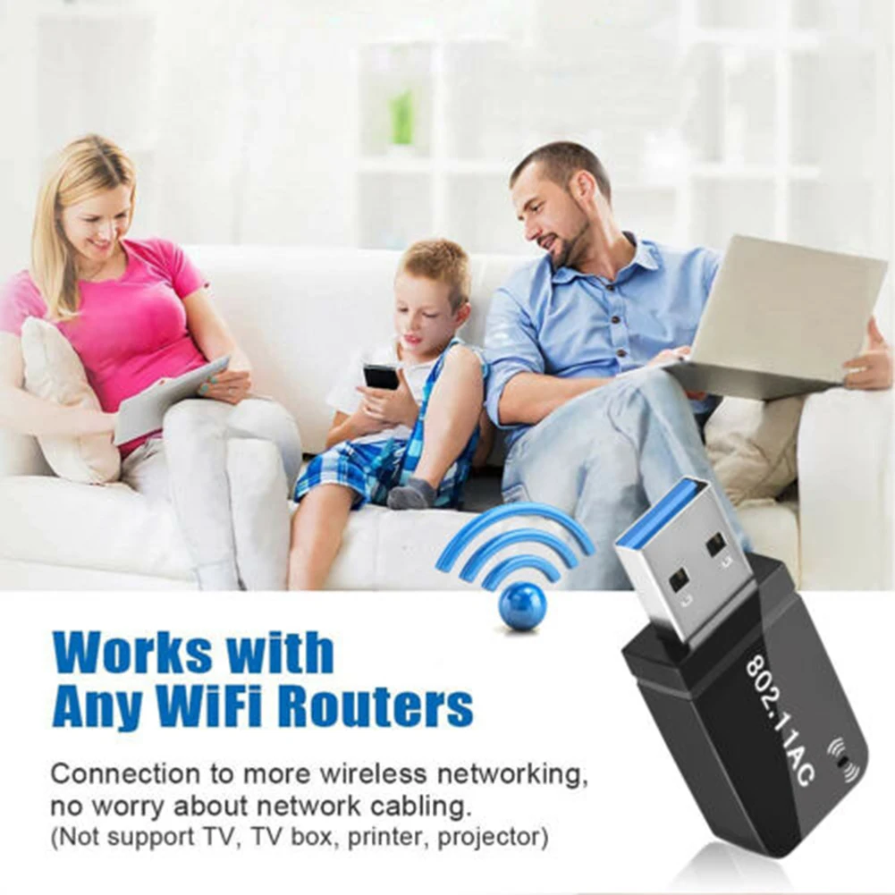 Ультра-Быстрый двухдиапазонный Wi-Fi адаптер: используя новейшие 802.11ac технологии Wi-Fi, 2,4 ГГц Wi-Fi со скоростью до 300 Мбит/с) Wi-Fi 5 ГГц до 867 Мбит/с.