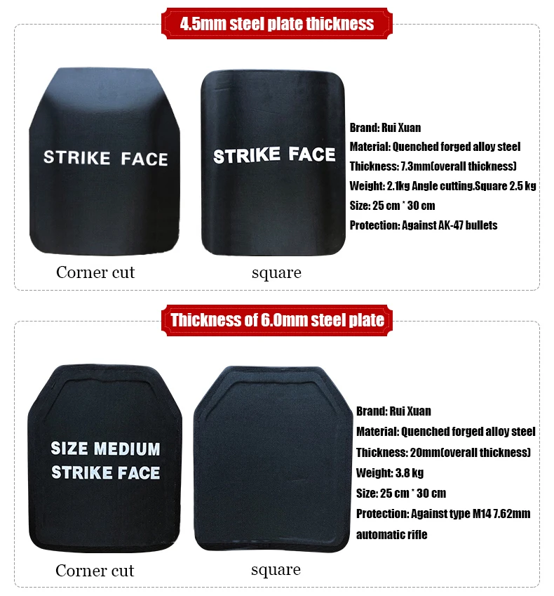 Эта стальная пластина выкована из hig 1000 ° высокая температура закалки, высокая твердость, хорошая анти-эластичность. Стальная пластина, фактическая толщина больше, чем оригинальная толщина. Легко носить с собой, можно поместить в тактический жилет и сумку.