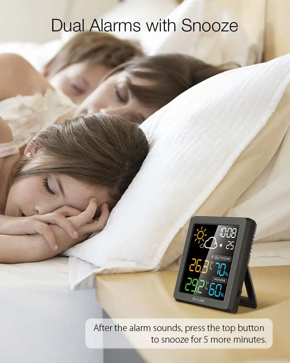 Метеостанция DIGOO DG-8647 с часами цифровой измеритель температуры и влажности ЖК - купить