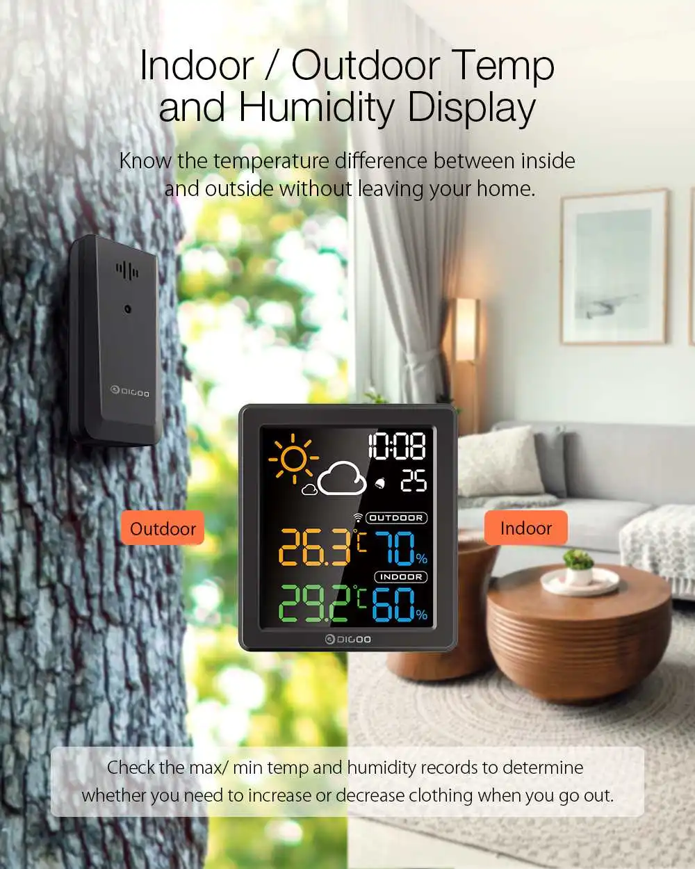 Узнайте разницу температур внутри и снаружи, не выходя из дома.