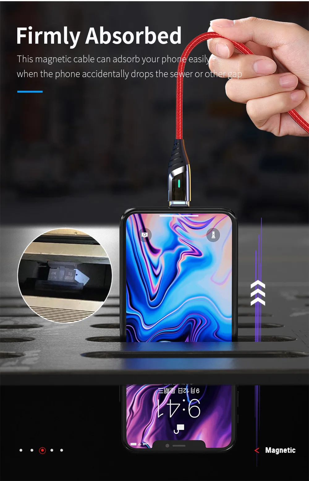 1. [Характеристики]:3 А (макс.) Быстрая зарядка + светодиодный индикатор + сильный магнит + передача данных