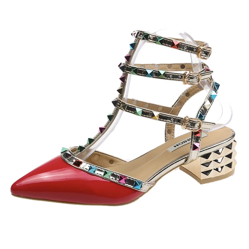Женские туфли с заклепками FANAN свадебные острым носком на высоком квадратном - купить
