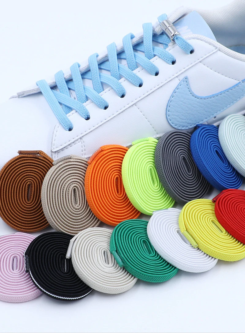 Отзывы о Круглые эластичные шнурки с металлическим замком плоские модные безопасные без