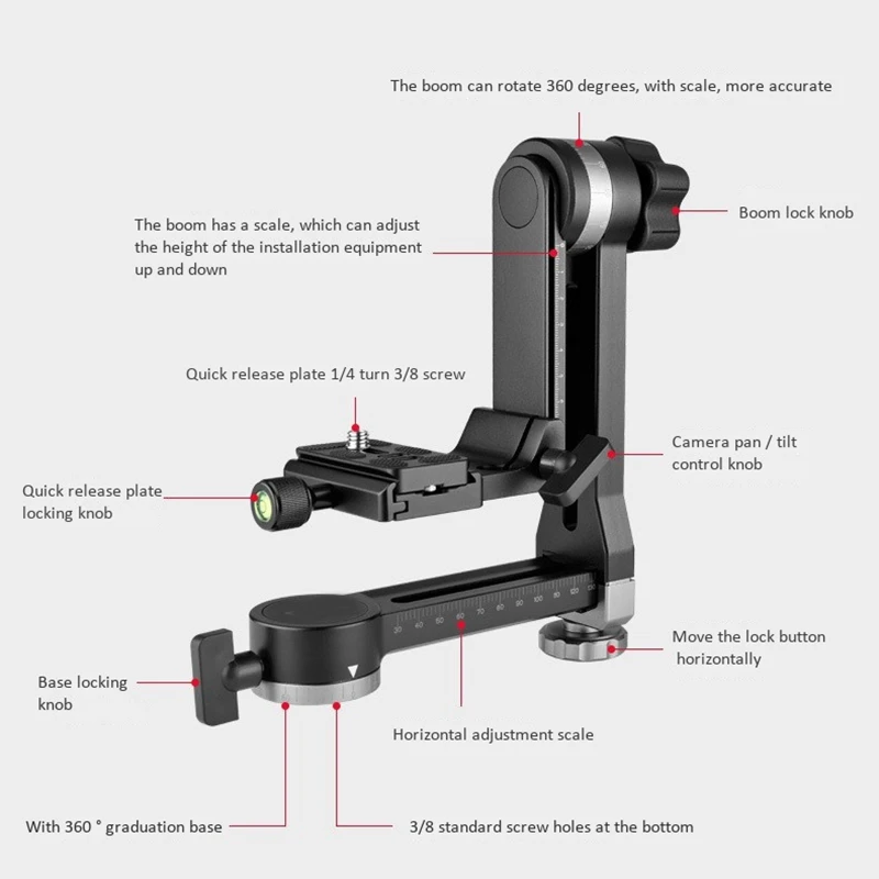 Универсальный шарнир рукоятка имеет 360-градусная шкала, которая может точную настройку, затухания, и камеры на фото из-за съемки под углом и может быть отрегулировано по своему желанию.