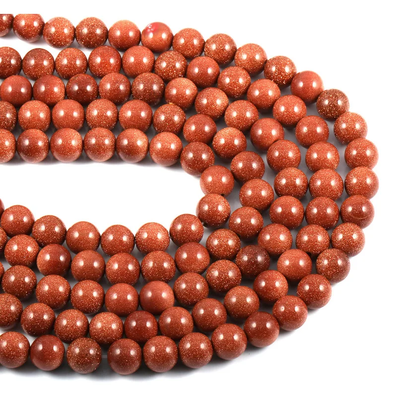 Круглые бусины из натурального камня с золотым песком для изготовления - купить