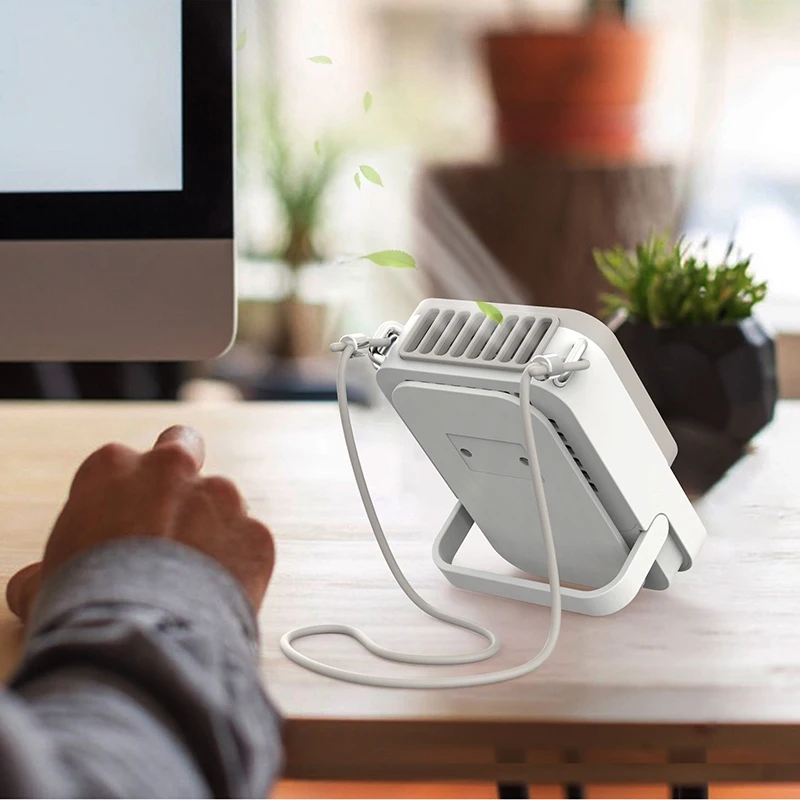 Новый дизайн позволяет повесить шею, освободить руки, стоять на столе и наслаждаться прохладой ветра.