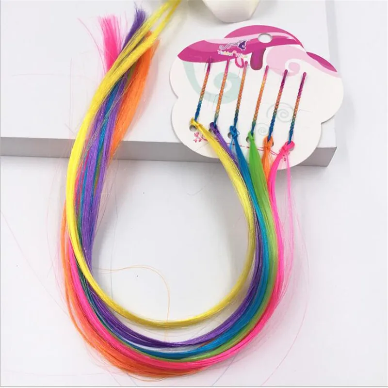 Отзывы о Цветные парики для девочек 6 шт./компл. конский хвост украшение волос заколки