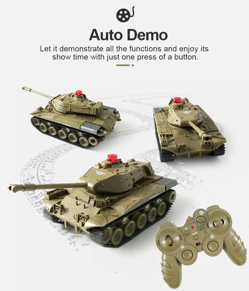 Описание: Масштаб: 1/47 Модель: JJRC Скорость: 10 км/ч Двигатель: щетка Частота передатчика: 2,4 GHZ 2CH Батарея передатчика: батарея 4XAA (не входит в комплект) Аккумулятор: Nicd 3,7 v 500mah Время зарядки: 2 ч Время использования: 15 мин Дистанция управления: 40 м Функция: вперед, назад, влево, вправо Размер: 20.9x11.8x10.3cm Размер посылка: 31.5x18.5x12.5см Вес: 400 г Описание: 1. 2,4G пульт, многоличная работа не мешает друг другу; 2. При руле вперед, назад и влево-вправо башня может вращаться на 270 градусов, а звук имитируемого двигателя танка; 3. Башенка имеет автоматическое сцепление. Нажмите клавишу cannon ball на пульте управления, появляется звук каннонбола и инерция фюзеляжа. 4. Нажмите кнопку машинки дистанционного управления, будет непрерывный звук машины; 5. Танк имеет функцию автоматической демонстрации, нажмите кнопку автоматической демонстрации, танк автоматически продемонстрирует набор запрограммированных демонстрационных действий 6. Функция программирования: Нажмите кнопку один раз, автомобиль издает звуковой сигнал и переходит в функцию программирования. Нажмите другие функциональные кнопки на пульте дистанционного управления последовательно запрограммируют функции в память, а затем нажмите кнопку программирования, чтобы автоматически ввести функцию программирования по порядку. Функциональные клавиши могут прерывать воспроизведение программирования. Посылка входит: 1 * Радиоуправляемый автомобиль 1 * контроллер 1 * перезаряжаемый аккумулятор (встроенный) 1 * зарядное устройство