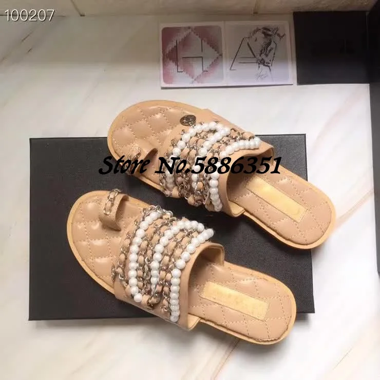 Тапочки цепи жемчужные бусины смешанный 2020 женские домашние тапочки шлепанцы - купить