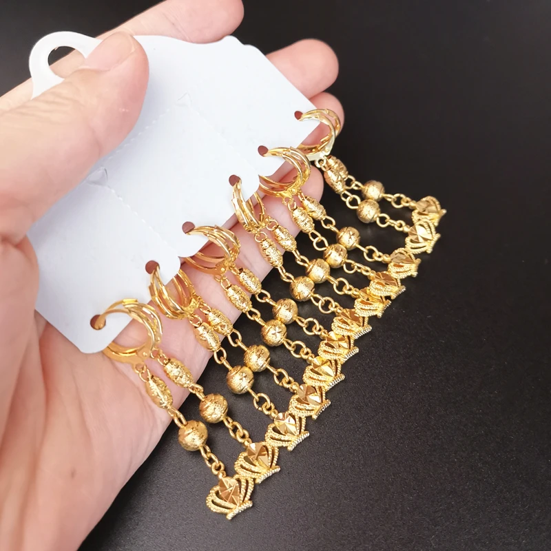 Купить Серьги из позолоченного золотом 24K для женщин с длинной подвеской в виде короны, африканской бижутерией, аксессуарами для украшений, женскими серьгами