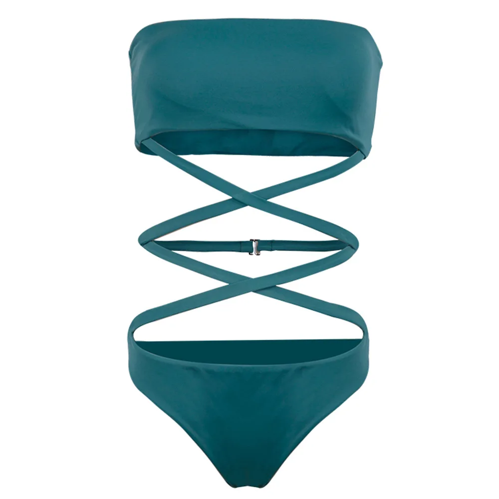 Отзывы о 2020 Swimsuit Female Split Woman Solid Color Bandage Bikini Tube Top European and American Sexy Backless Спорт и развлечения