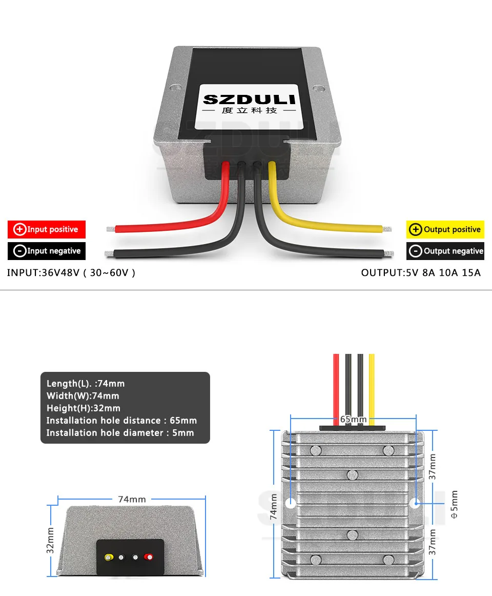 Отзывы о Преобразователь с понижающим модулем 48 в 60 до 5 1A 2A 3A 5A 8A редуктор постоянного тока