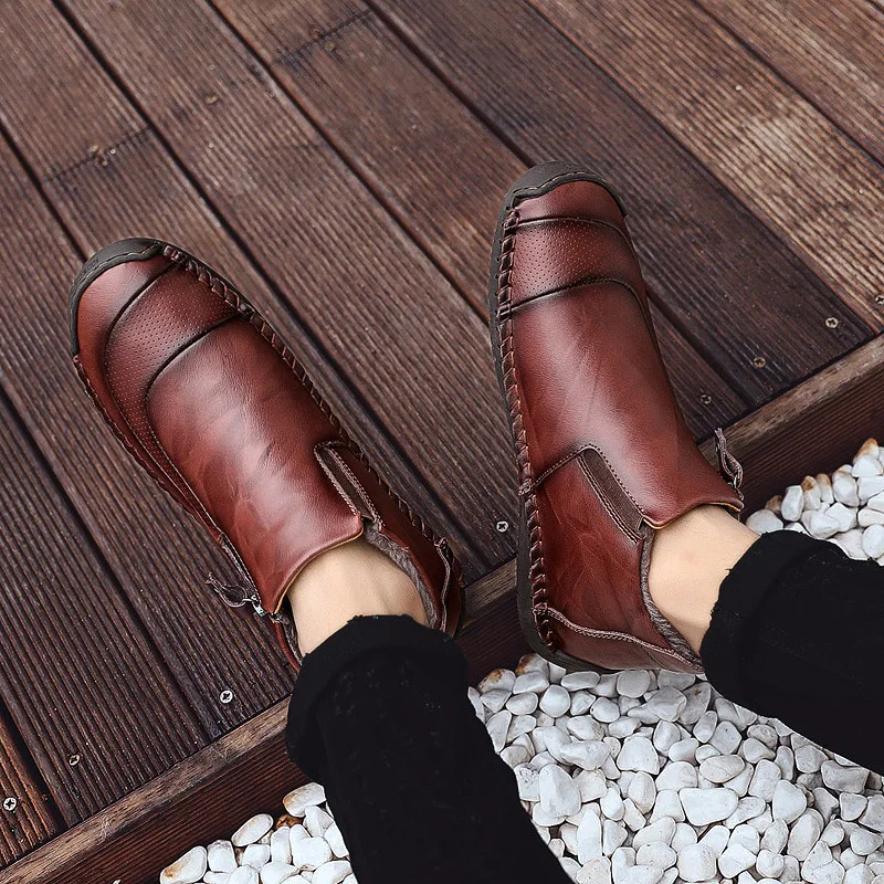 Мокасины мужские без застежки удобные кожаные туфли теплая зимняя обувь лоферы - купить