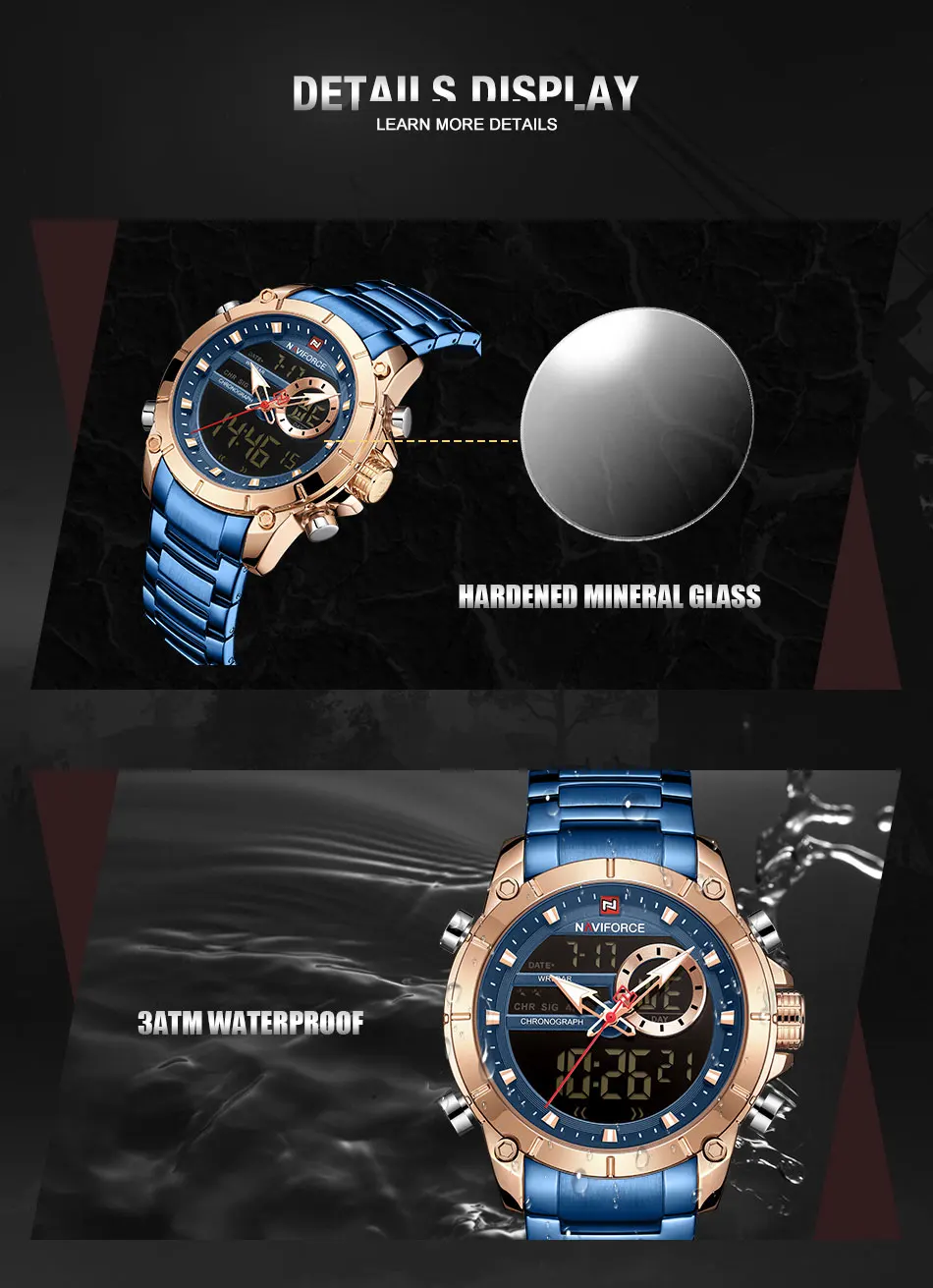 - Топ бренд класса люкс Высокое качество дизайн циферблат-Чехол Материал: нержавеющая сталь-Отличное качество изготовления и элегантный стиль Технические характеристики-Материал корпуса: сплав-Чехол Диаметр: 43,5 мм-Чехол Толщина: 15,5 мм-Длина ремешка: 240 мм (чехол в комплекте)-Ширина ремешка: 23 мм Что входит в комплект1x100%NAVIFORCEНовый бренд1 x аналоговые модные спортивные мужские часыОтзывы о Часы мужские кварцевые в стиле милитари спортивные светодиодсветодиодный