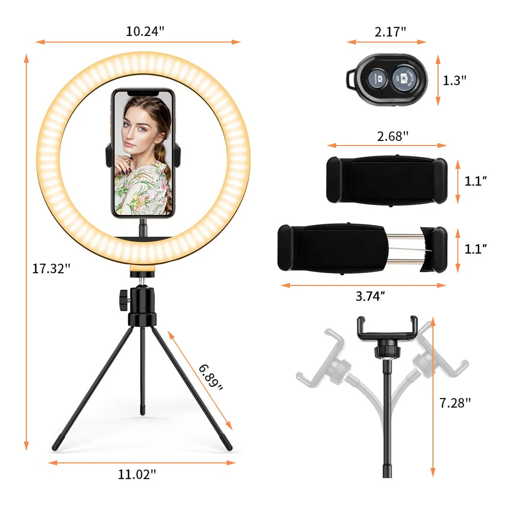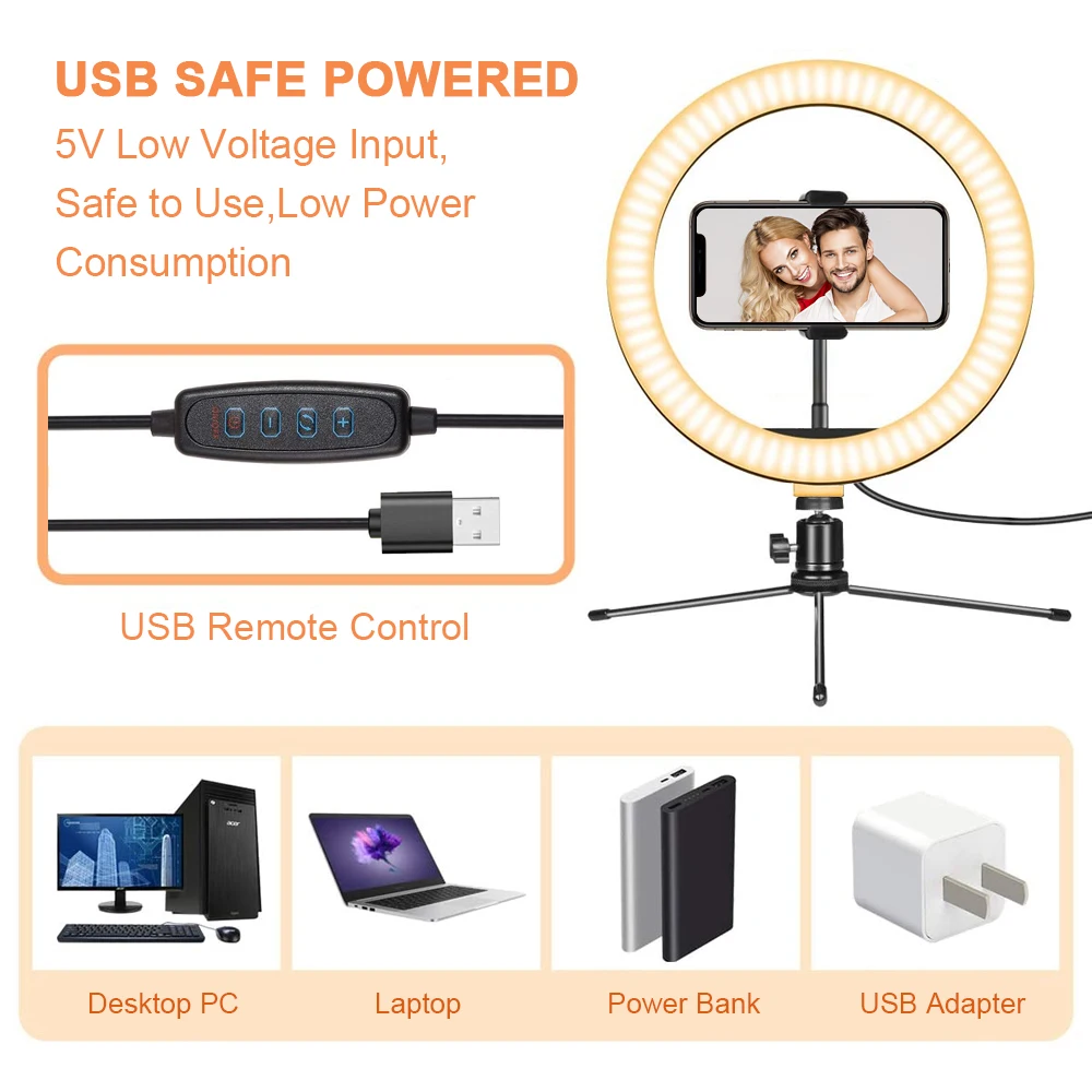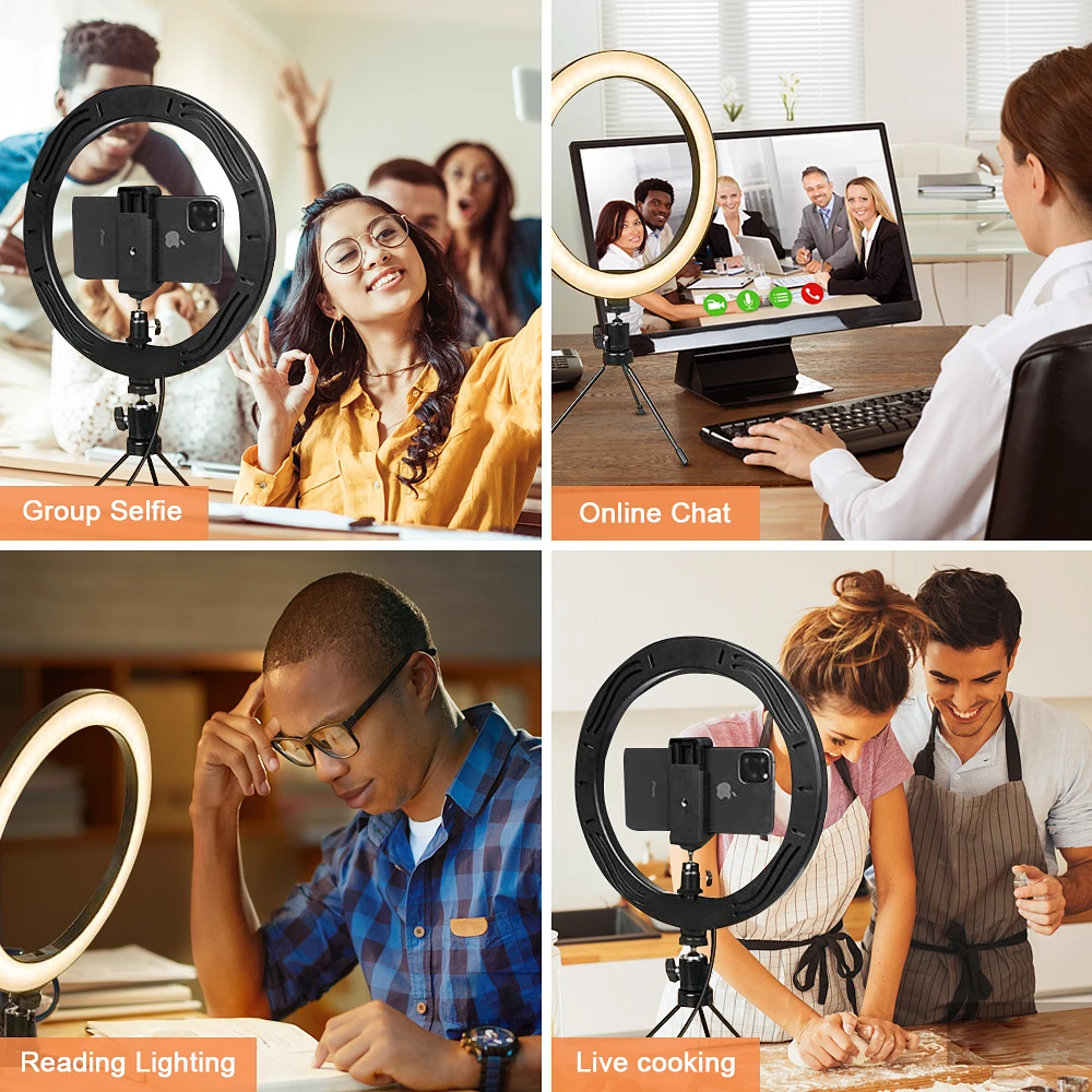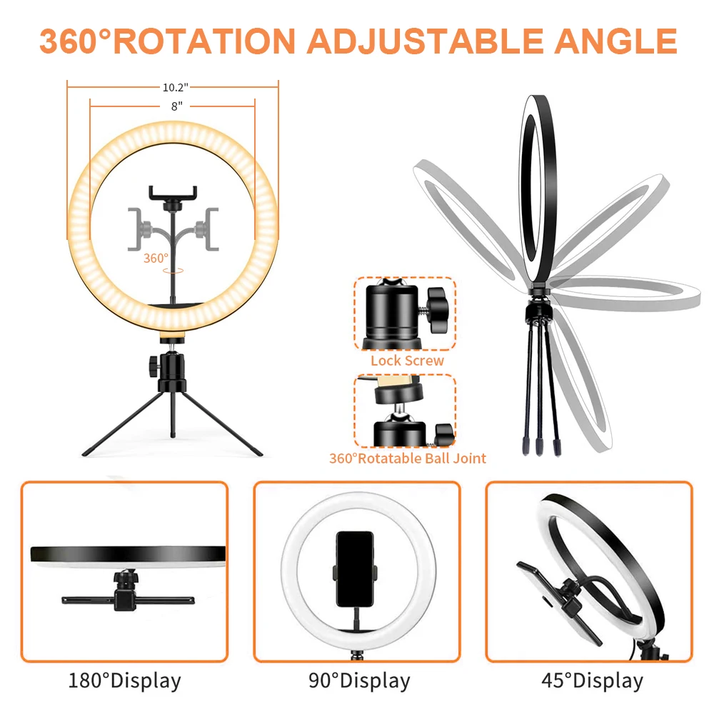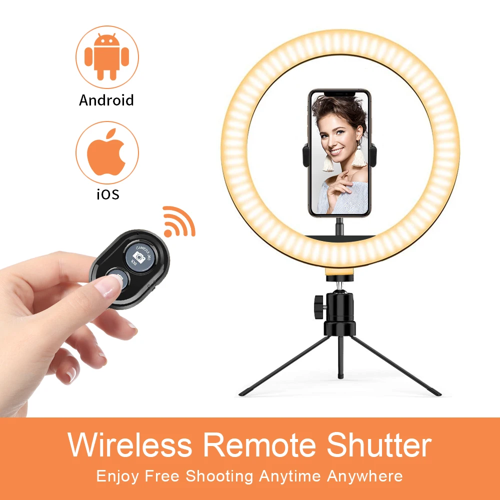 Отзывы о Приглушаемый светодиодный кольцевой светильник для селфи со штативом USB