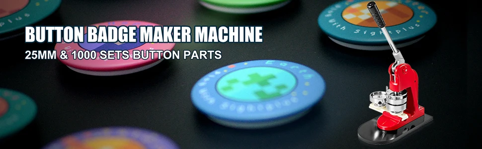 1 x машина для изготовления кнопок 1 х многоразовый круглый резак 1000 x комплектных частей кнопок (корпуса/фронты, штифты и пластик/майлар), чтобы сделать 1000 кнопок.