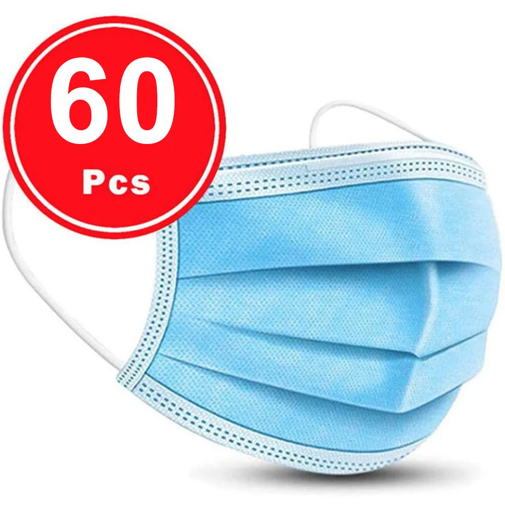 Купить Mascarilla 60 шт одноразовая маска промышленная 3ply Ушная петля дышащая для лица Masque