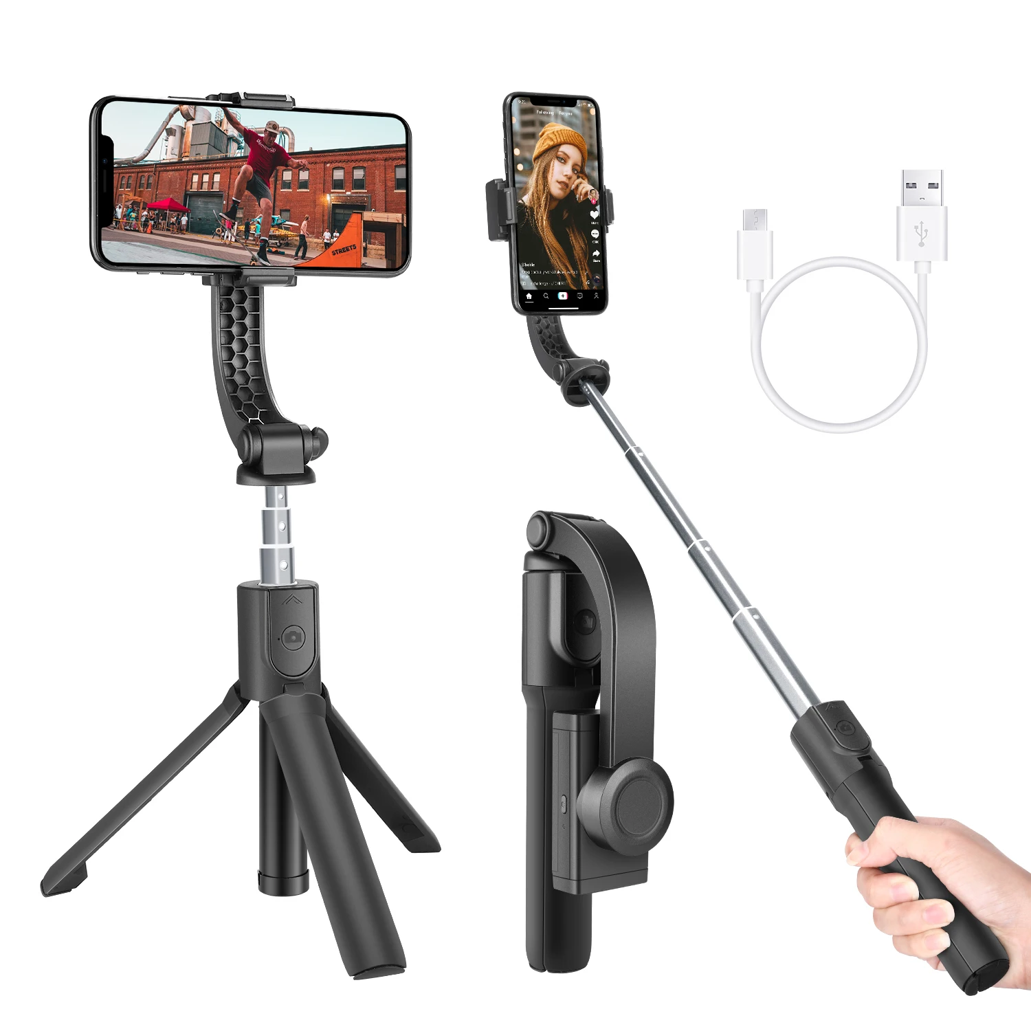 Автоматический сбалансированный карданный Стабилизатор: в паре со смартфоном, стабилизатор управления поворотом может непрерывно и автоматически помочь смартфону найти сбалансированное положение за короткое время и поддерживать стабильность при движении независимо от того, является ли экран телефона горизонтальным или вертикальным. И вы можете легко использовать usb-кабель (входит в комплект) для полной зарядки, когда наклон был из батареи, или вы можете повернуть его, пока он не запирается с локатором и использовать его в качестве обычной селфи-палки