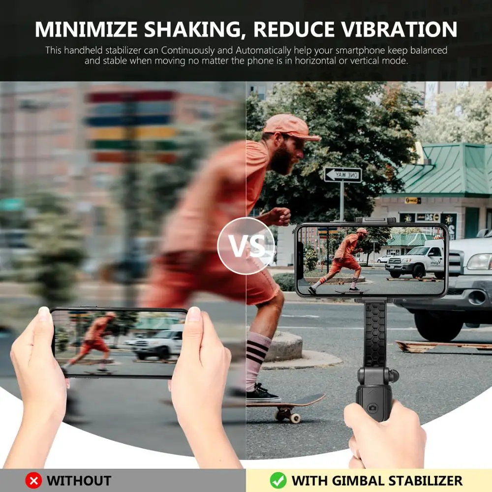 Снижение вибрации: Ручной Стабилизатор использует Электронный Акселерометр, чтобы минимизировать тряску во время использования. Это автоматический баланс, чтобы предотвратить встряхивание устройства и размытие изображения, так что отснятое изображение и видео всегда будут четкими. ABS + резиновый Зажим для телефона также сохраняет устройство более стабильным. Универсальный зажим для телефона подходит для большинства телефонов шириной 2,3-4,1 дюймов