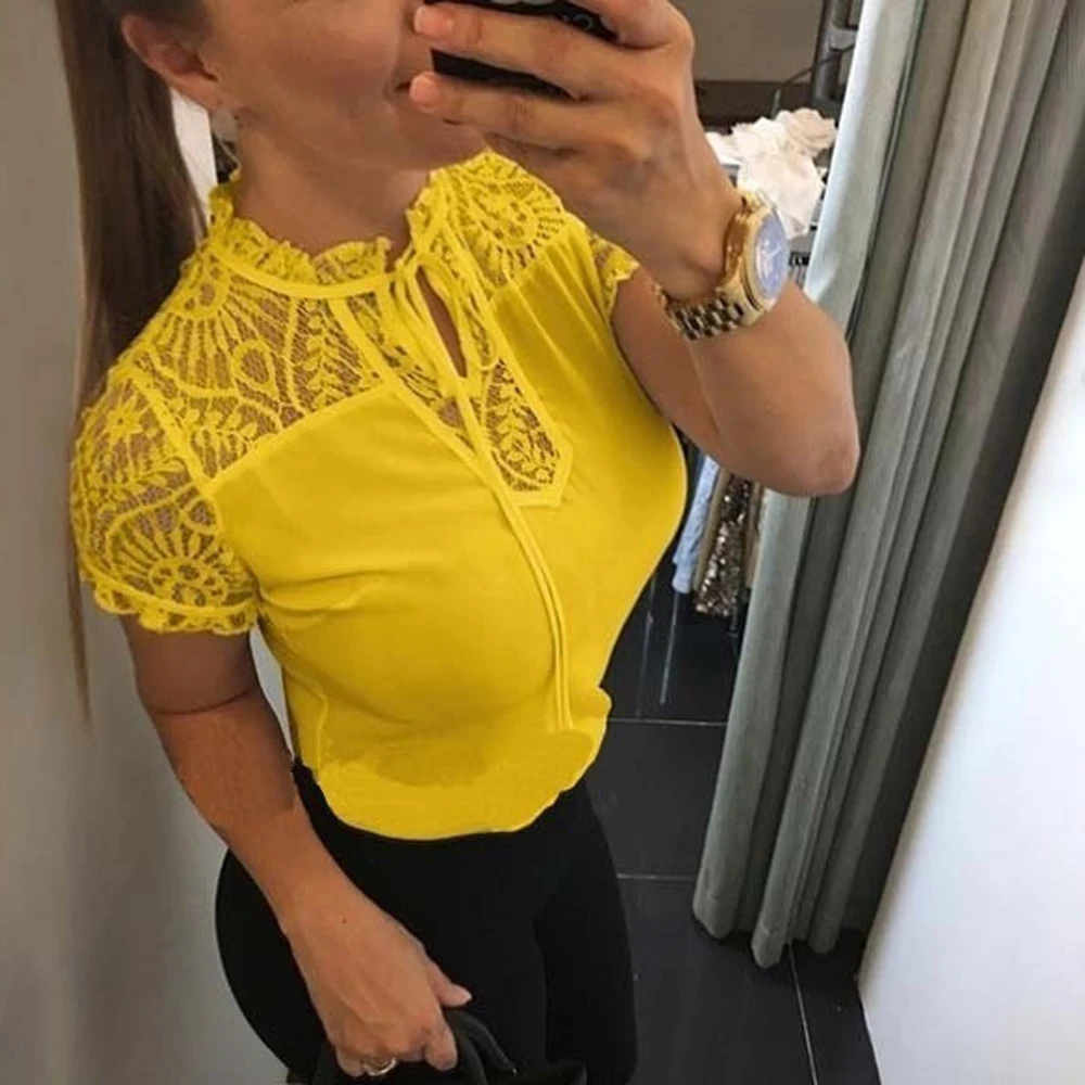 Купить Женская кружевная блузка в стиле пэчворк летние топы с коротким рукавом и