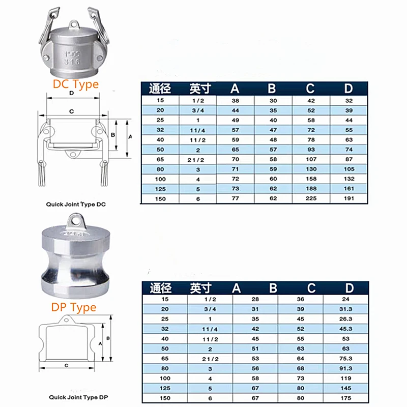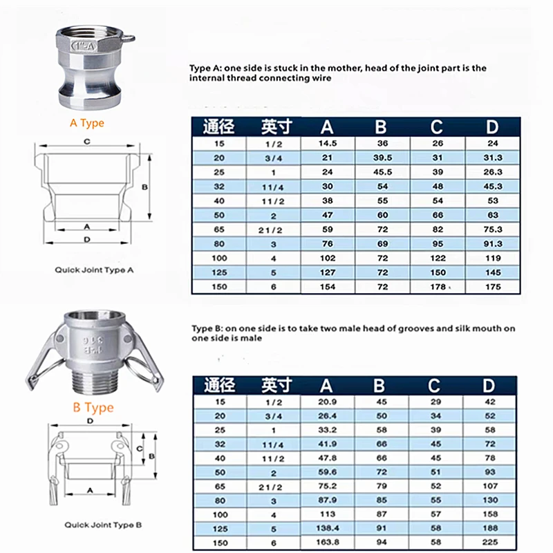 Характеристика: быстрые отсоединения Camlock используются для легкого и быстрого подключения и отсоединения тех, насосов, охладителей и других фитингов.