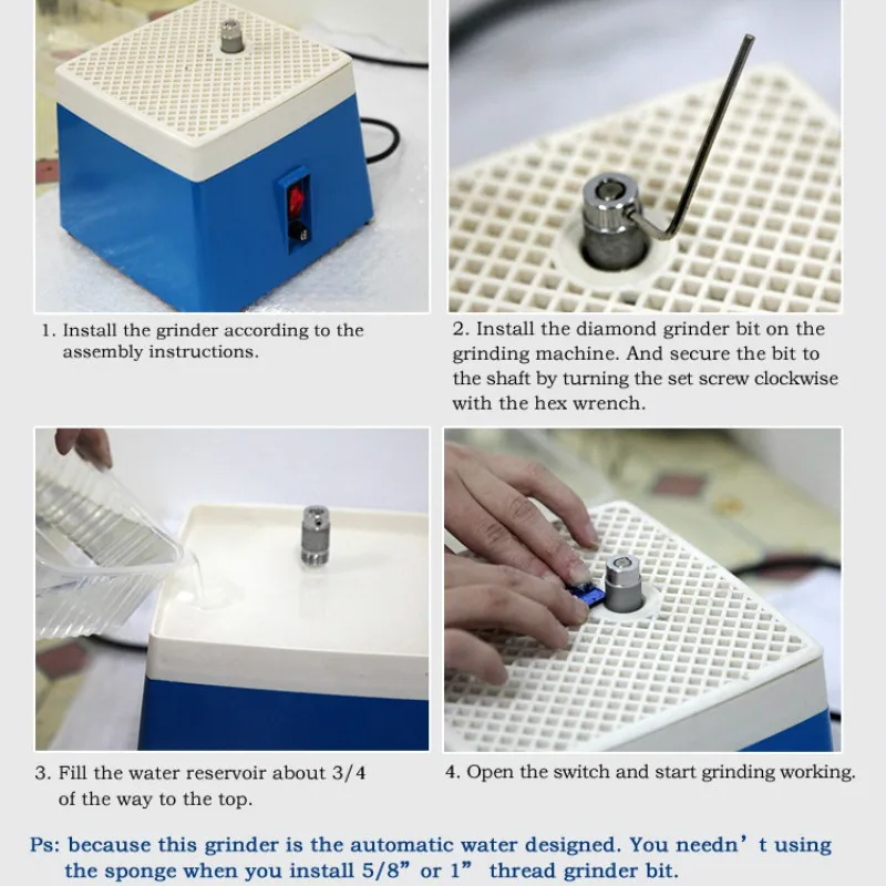 1., Не может быть заземлен без воды. При шлифовке убедитесь, что колесо промокает.