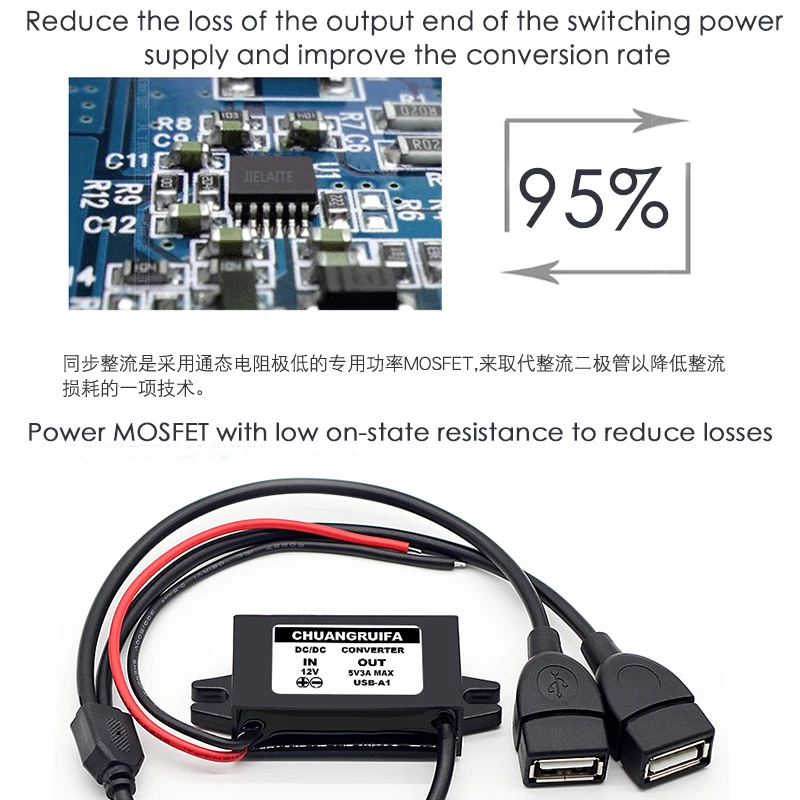 <Хорошая производительность: высокая эффективность достигает 96%, большой ток, низкое тепло, 3A не требует охлаждения.