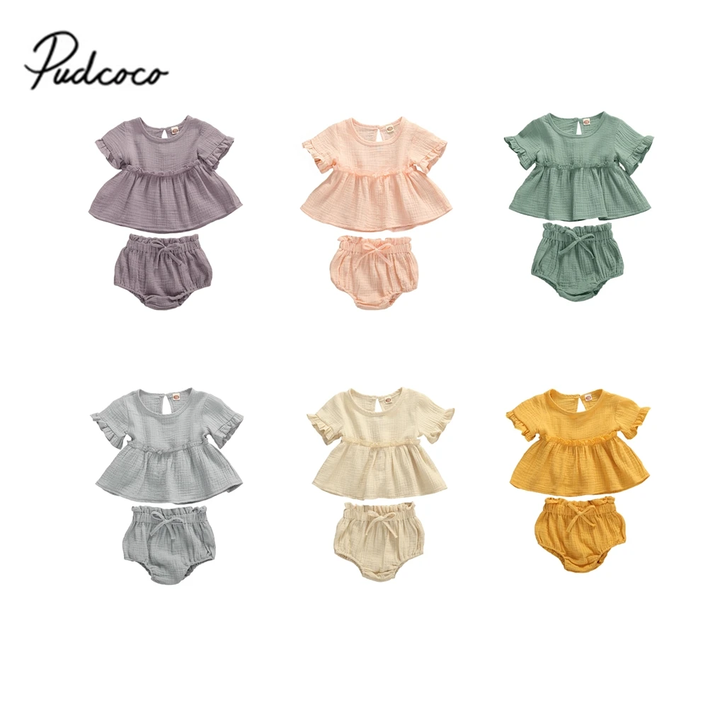 Купить Комплект из 2 предметов для маленьких девочек дышащий однотонный кружевной топ с
