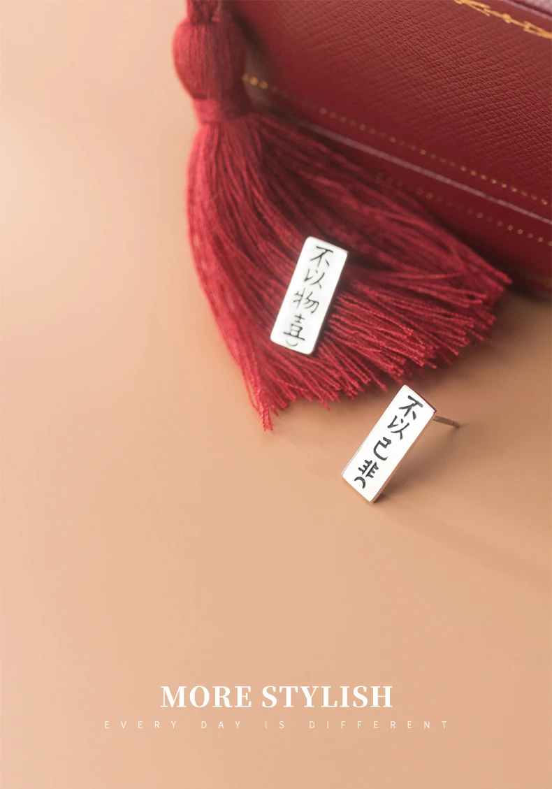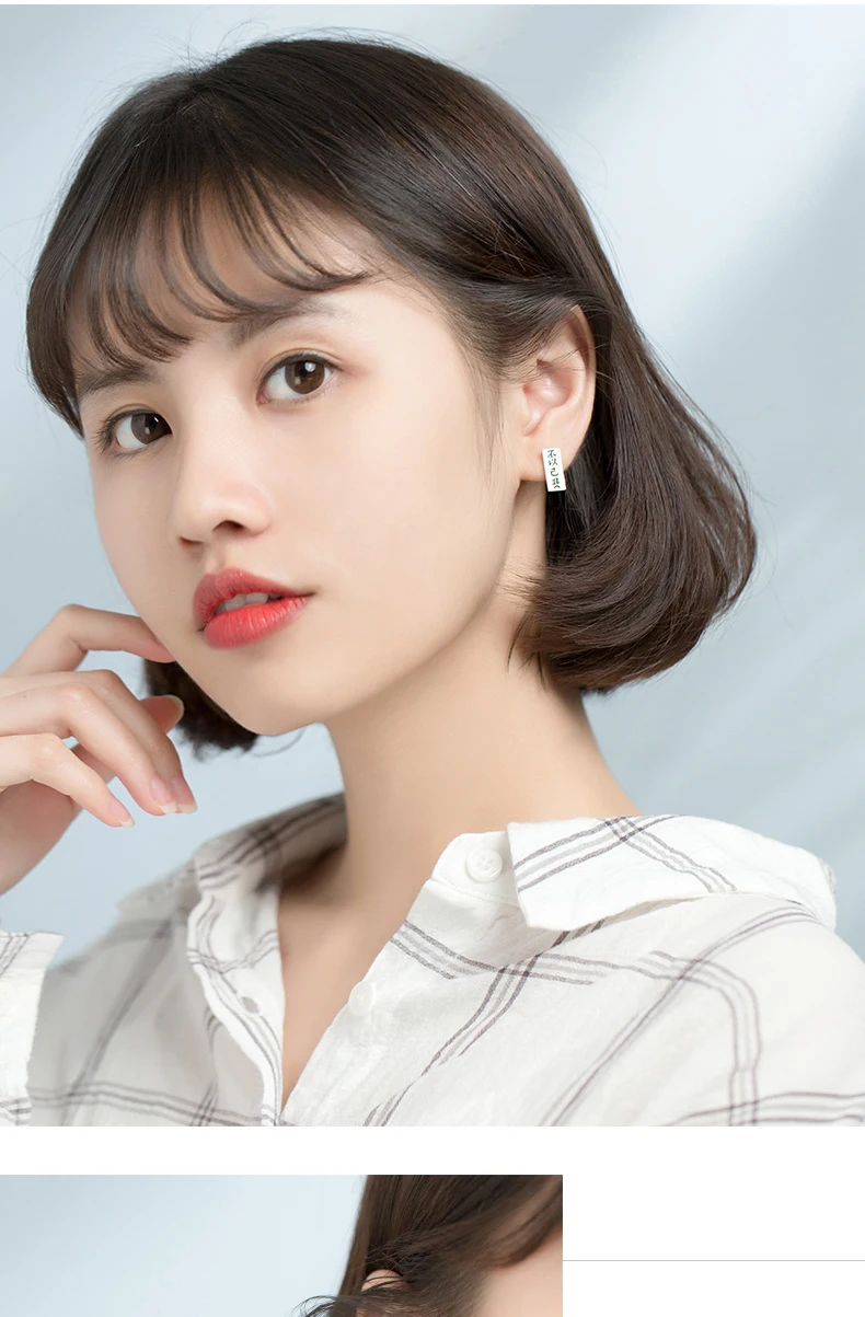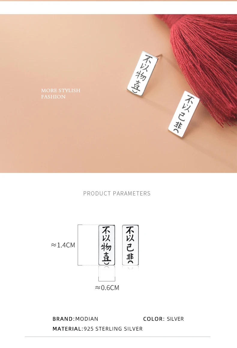Отзывы о Modian Real 925 Sterling Silver Minimalism Letter Chinese Geometric Rectangle Stud Earring fit Women Unique Fashion Fine Jewelry Украшения