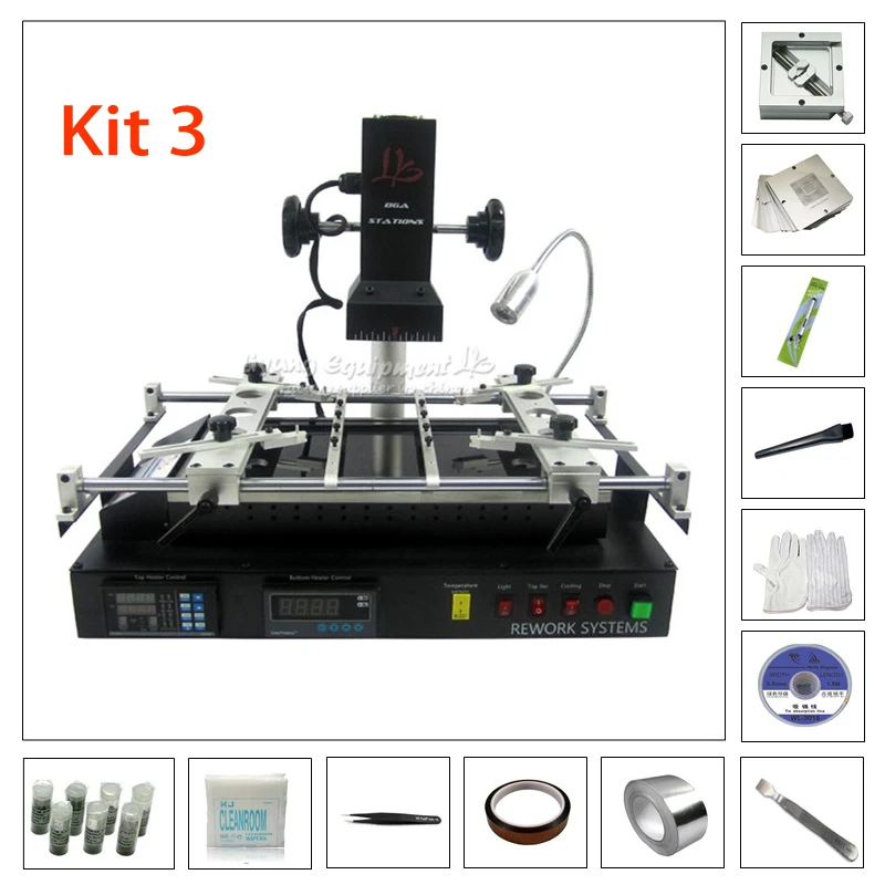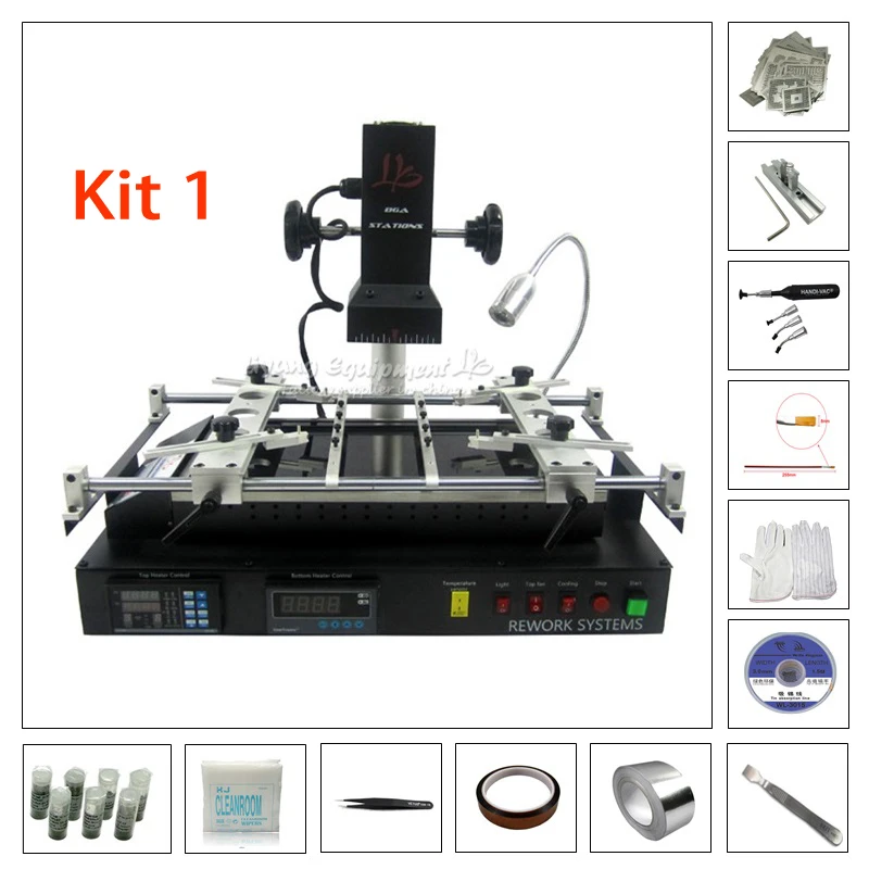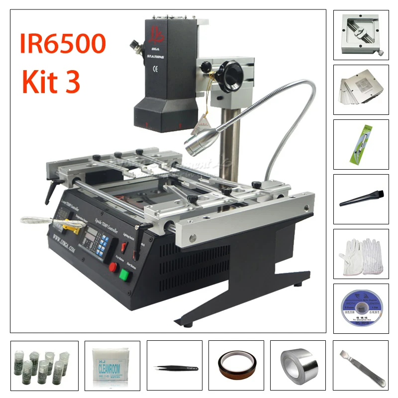 LY IR8500 X 1Прямой тепловой джиг x 1810 шт трафарет прямого нагрева x 1 ( 810 шт)25K свинцовый припой 0,3,.35.40.45.50.60.76 мм размер каждый x 1Серебряная лента 50 мм x 120 мм kapton лента x 19x9 мм 300 шт. не Пылезащитная ткань x 1WL-3015 для удаления покраски x 1Handi-vac вакуумная Ручка x 1Перчатка x 1Скребок x 1Флюс-щетка x 1Пинцет ESD-10 x 1