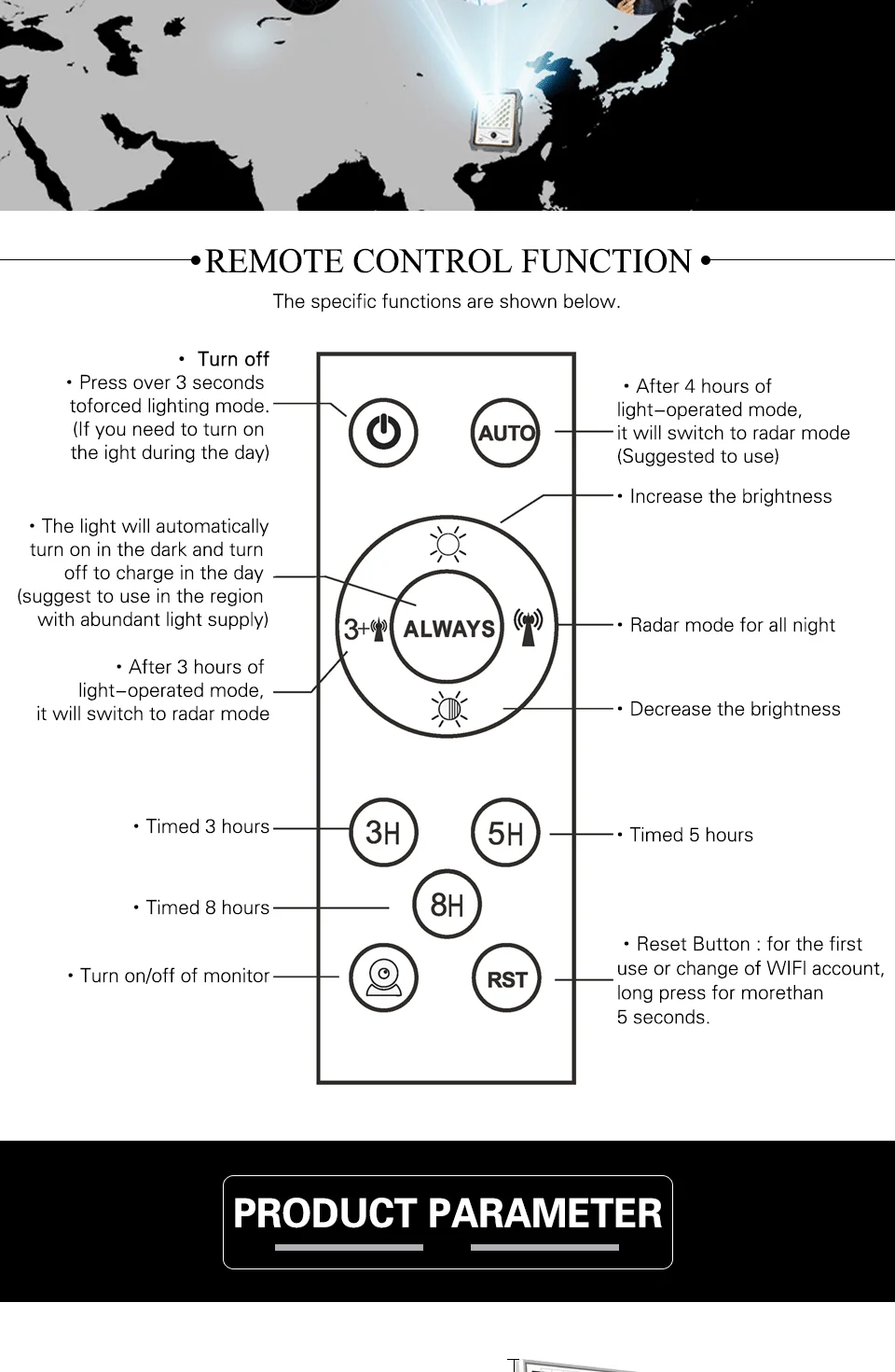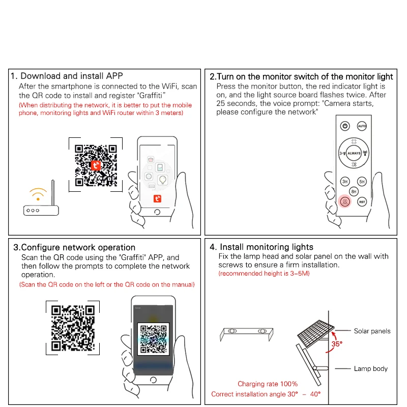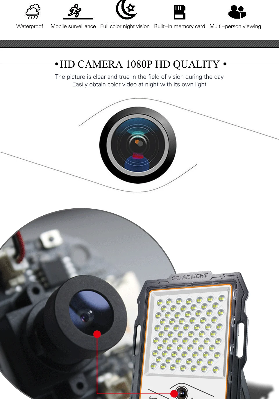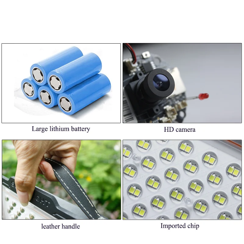 Мощность: 100 Вт/200 Вт/300 Вт/400 Вт Батарея: литий-железо фосфат 12Ah/24Ah/30Ah/42Ah Фотоэлектрическая панель: поликристаллическая 5 В/20 Вт (350*350 мм)/5 В/28 Вт (500*350 мм)/5 В/35 Вт (580*350 мм)/5 В/40 Вт (630*350 мм) Количество световых бусин: 82 2835 световых бусин/144 2835 световых бусин/236 2835 световых бусин/324 2835 световых бусин Объектив: 2 миллиона пикселей, мониторинг в реальном времени в течение дня Время разряда: 2 дождливых дня Светильник ing функция: 4 часа + радар (опционально Режим постоянного светильник, Полный режим радара и т. Д.) Светильник Размер корпуса: 217*179*45 мм/258*213*45 мм/312*270*50 мм/365*295*50 мм Посылка содержит: корпус лампы + панель солнечных батарей + водонепроницаемую линию + u-образную раму + пульт дистанционного управления + винт