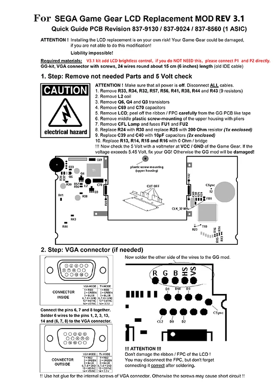 For Sega SEGA Game Gear GG Highlight Screen LCD Retrofit Kit V-3.1 Version