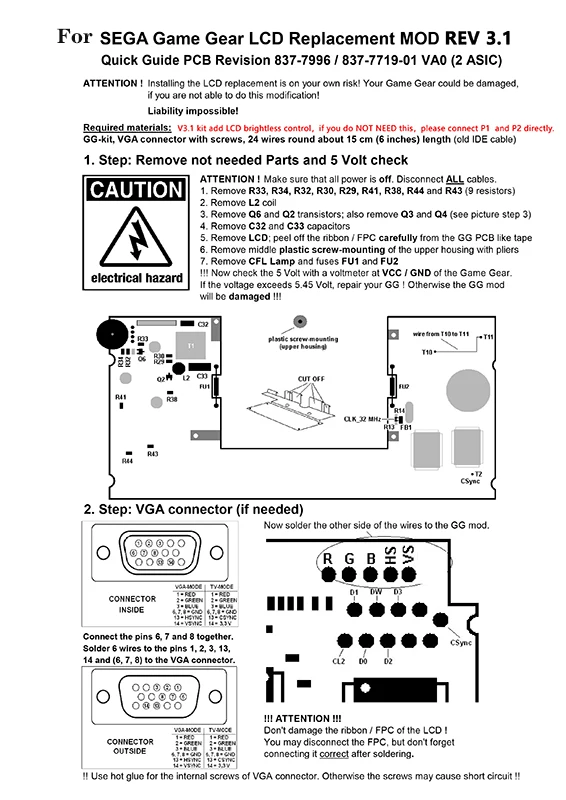 Highlight Full Display V-3.1 LCD Screen For SEGA Game Gear GG Adjustable Brightness Support VGA output Mod HighLit LCD Kits