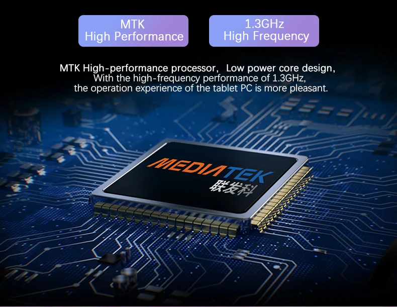 MTK высокопроизводительный процессор с низким энергопотреблением core дизайн, с высокочастотным производительность 1,3 ГГц, опытом работы планшетного ПК приятнее.
