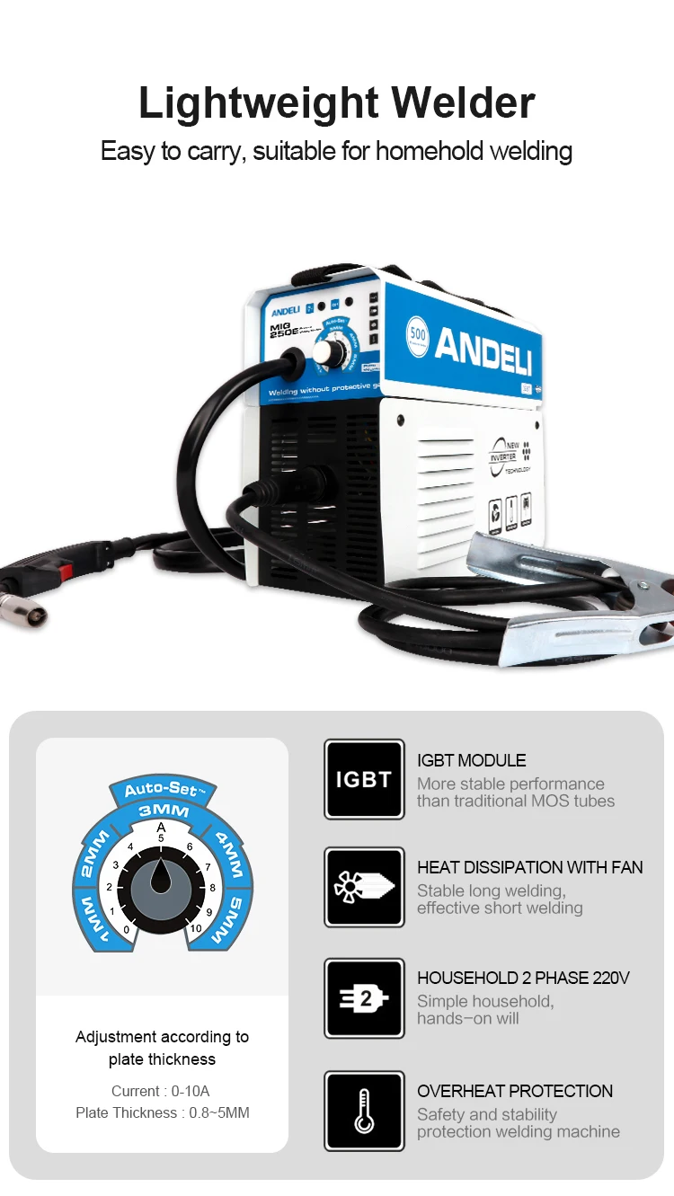 ANDELI MIG 250E безгазовый сварочный аппарат бытовой Минимальный подходит для - купить