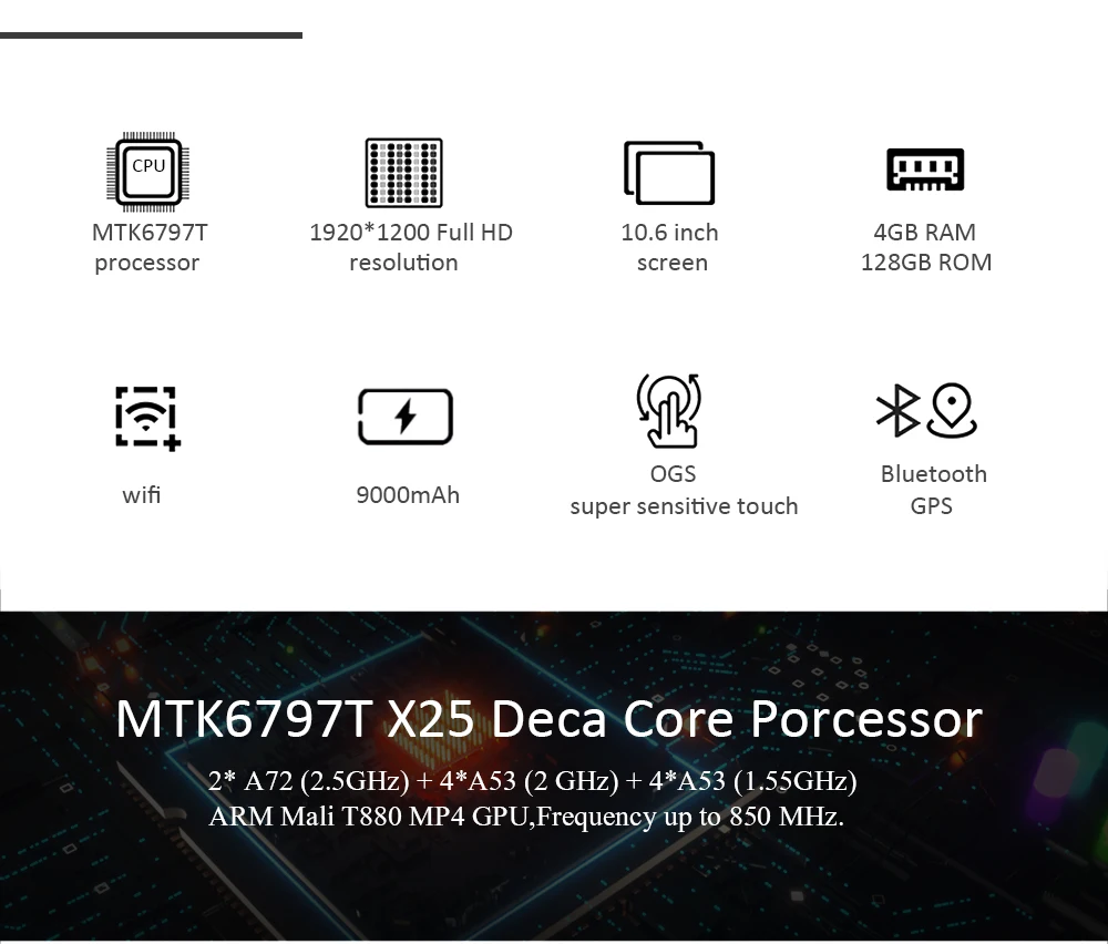 Процессор: MTK6797T 4 * Cortex-A53( 2 ГГц) 4 * Cortex-A53 (1,55 ГГц) 2 * Cortex-A72 (2,5 ГГц)