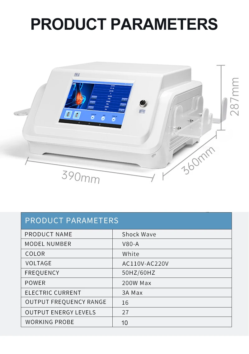 Теория ударно-волновой терапевтической машины* [Устройство для электромагнитной импульсной терапии]Терапевтический аппарат Shock wave pain-это физический механизм, проходящий через Среднюю (воздушную или газовую) Проводимость механического волнового импульсного давления, производимый пневматическими импульсными звуковыми волнами в точную баллистическую ударную волну, движение и позиционирование зонда через терапию, может произойти боль от широкого спектра тканей человека, имеет хороший эффект лечения.* [Изменить место повреждения]Ударная Волна может изменить химическую среду места повреждения, что делает ткани производят и отпускают химикаты, предотвращающие боль. Между тем, ударная волна может разрушить мембрану болевого рецептора, подавить производство и распространение болевых сигналов. Кроме того, ударная волна вызывает выработку эндорфина, уменьшая чувствительность места повреждения к боли.* [Увеличение проницаемости]Увеличение проницаемости клеточной стенки, стимуляция микроциркуляции (крови, лимфы), высвобождение вещества P, уменьшение немиелиновых нервов, высвобождение оксида азота (вазодиляция, увеличение метаболизма клеток, неоангогенез, противовоспалительный эффект), стимуляция факторов роста (неогенез сосудов, костей, коллагена) и стимуляция стволовых клеток.* [Мощные функции]Облегчение боли и лечение подошвенного фасциита, сухожилия Ахилла, воспаления сухожилия плечевого сустава и кальцификации, боли в паху, эпикондилита. Больные могут чувствовать первые эффекты непосредственно после лечения, облегчение боли/уменьшение после нескольких сеансов лечения, хорошее соответствие лечения.Характеристика:1. Высокая эффективность, быстрое облегчение боли.2. Нет необходимости в хирургии, скорость лечения 80 ~ 90%.3. Неинвазивный, без анестезии, удобный и быстрый.4. Широко применяется для различных методов обработки мягких тканей.5. Эта машина может использоваться для лечения боли в суставах.6. Не повреждает нормальную ткань, только для болезни, особенно некротические клетки играют определенную роль.Использование продукта1. Сотовая связь: увеличение коэффициента пропускания клеточной мембраны путем улучшения активности ионных каналов, стимуляции деления клеток, стимуляции производства клеточных цитокинов.2. Размножение сосудов в области сухожилий и мышц: улучшениеКровообращение, увеличение концентрации фактора роста beta1, химиотерапия, иМитогенный эффект на остеобласты.3. Воздействие на систему оксида азота: заживление костей и Ремоделирование.4. Улучшение микроциркуляции и метаболизма.5. Растворение кальцифицированных фибробластов.6. Поддерживает производство коллагена.7. Снижение напряжения ткани8. Анальгетический эффект.9. Лечение EDПреимущество этой ударно-волновой машины1. При целевом нанесении ударных волн стресс для окружающих тканей довольно незначителен2. Тело не отягощено фармацевтическими средствами, за исключением кратковременного эффекта местной анестезии, если используется3. Возможность предотвращения необходимости хирургического вмешательства и его соответствующих опасностей4. По некоторым показаниям, таким как теннисный локоть, на самом деле нет другого эффективного леченияПараметры продуктаНазвание продукта: электрическая Ударная Волна V80AЦвет: белыйНапряжение: AC110V/AC220VЧастота