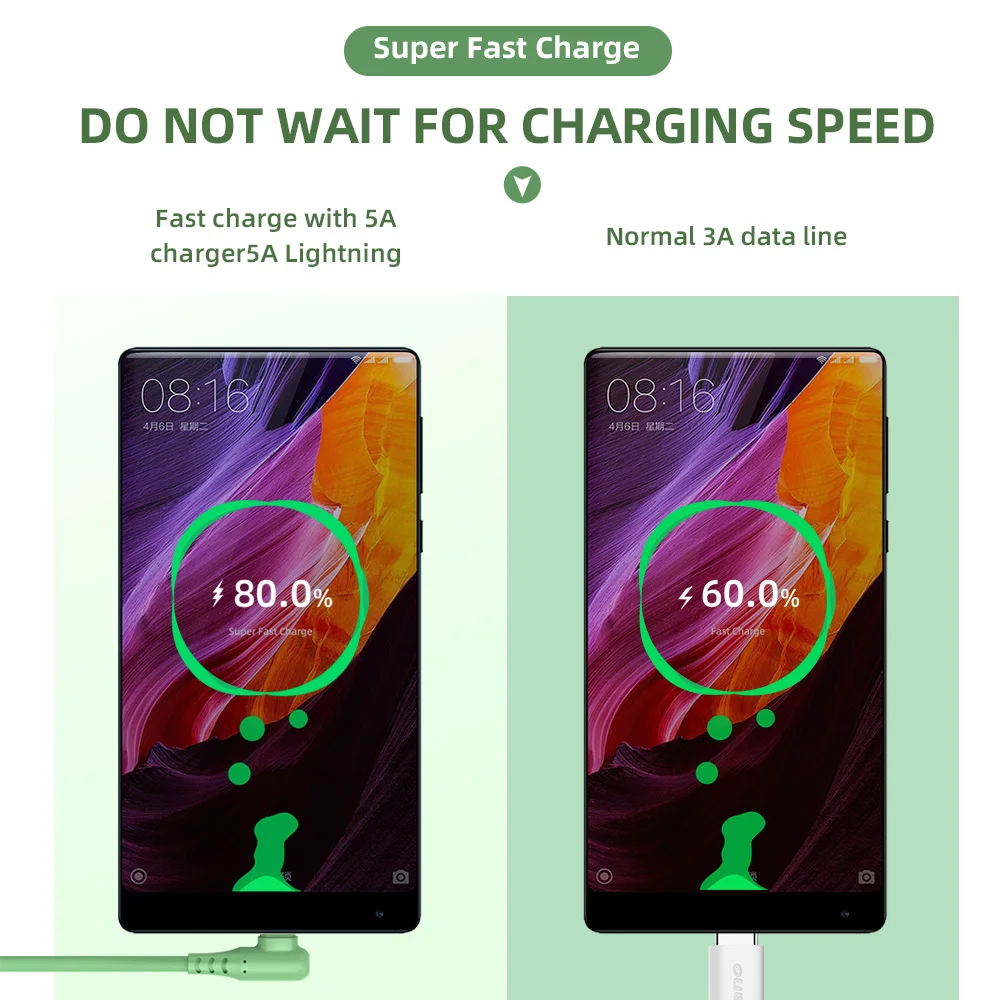 USB Type C кабель Hussain 5A для быстрой зарядки и с разъемом под углом 90 градусов - купить