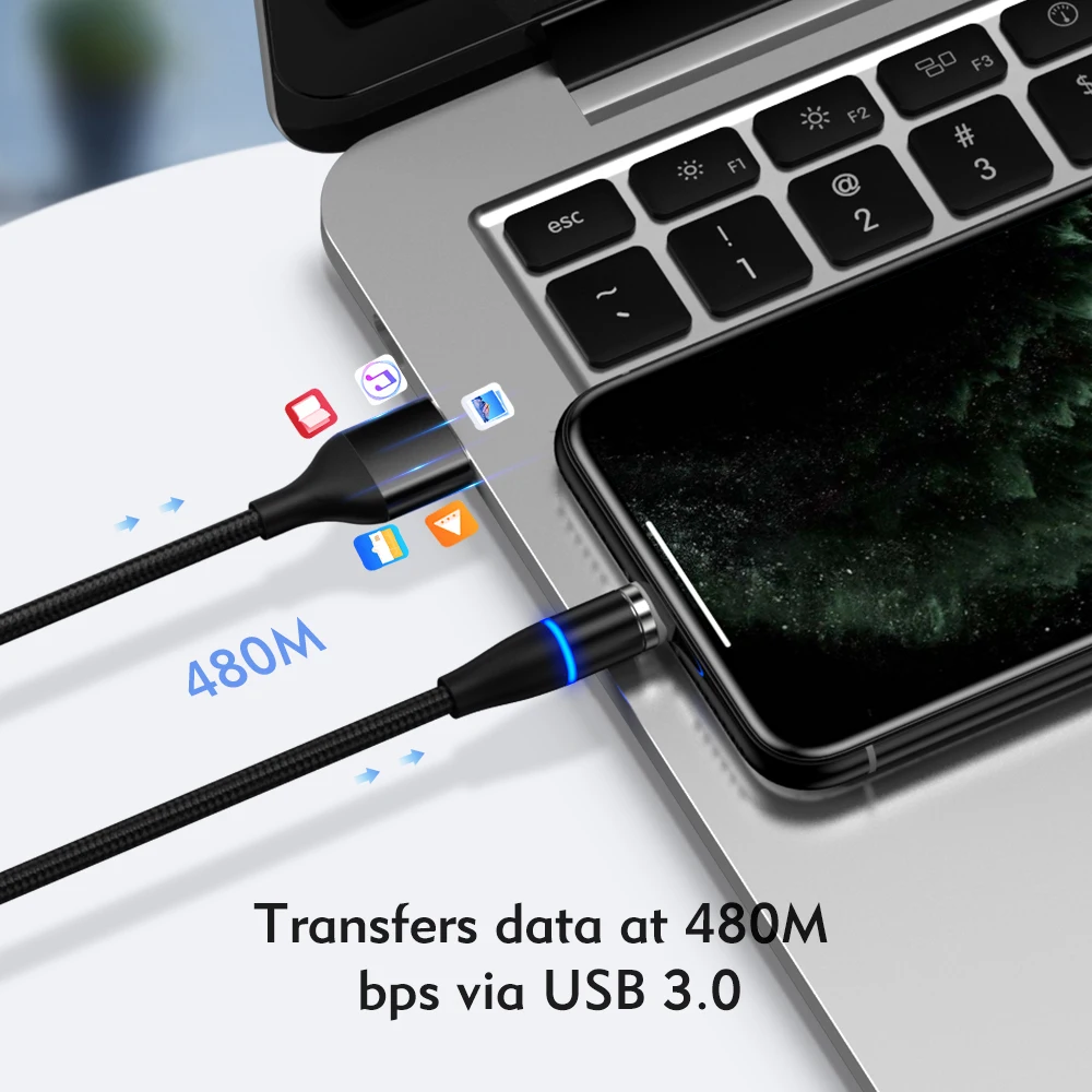 Магнитный кабель USB Type-C Micro 1 м 3 А быстрая зарядка 0 для iPhone 11 Samsung Xiaomi магнитный - купить