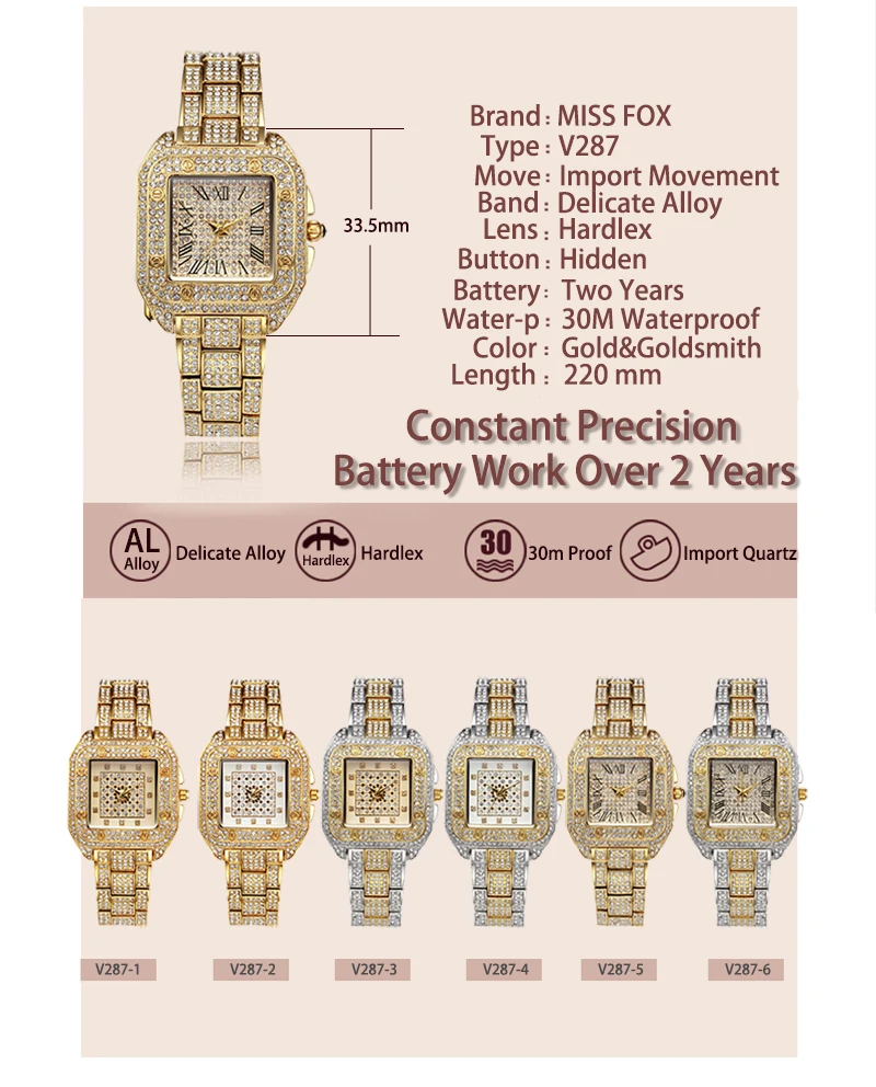 Купить Мужские наручные часы MISSFOX квадратные кварцевые с бриллиантами Movt полностью