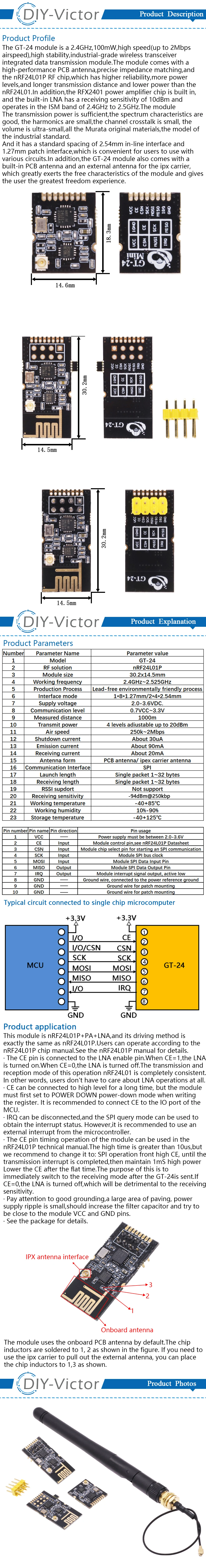 GT-24 беспроводной модуль 2 4G NRF24L01 + PA LNA с антенной промышленного класса цифровая - купить