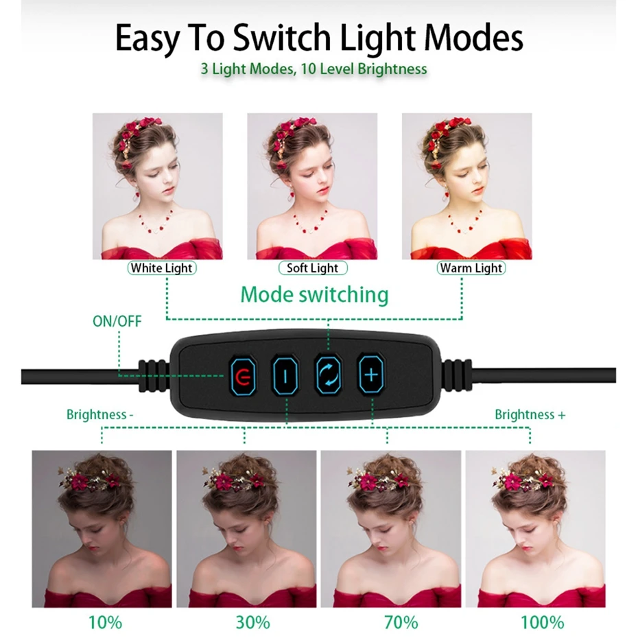 1].10 режимов яркости. 2].3 цвета, плавный затемняющий светильник, белый светильник, теплый светильник, мягкий светильник. 3]. Регулируемый светильник-подставка подходит для универсальных высоких и очень стабильных. 4]. Со студией, чтобы заполнить светильник фото, портрет автоспуска заполняющий светильник. 5]. Кольцевой светодиодный светильник для фотостудии с usb-разъемом, заполняющий светильник. 6]. Подходит для многих социальных, таких как создание, видео в режиме реального времени, студийный светильник, фотография.