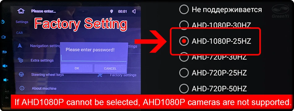 Перейдите в настройки автомобиля> заводские настройки> обратные (изображение) Настройки> Выберите AHD1080P