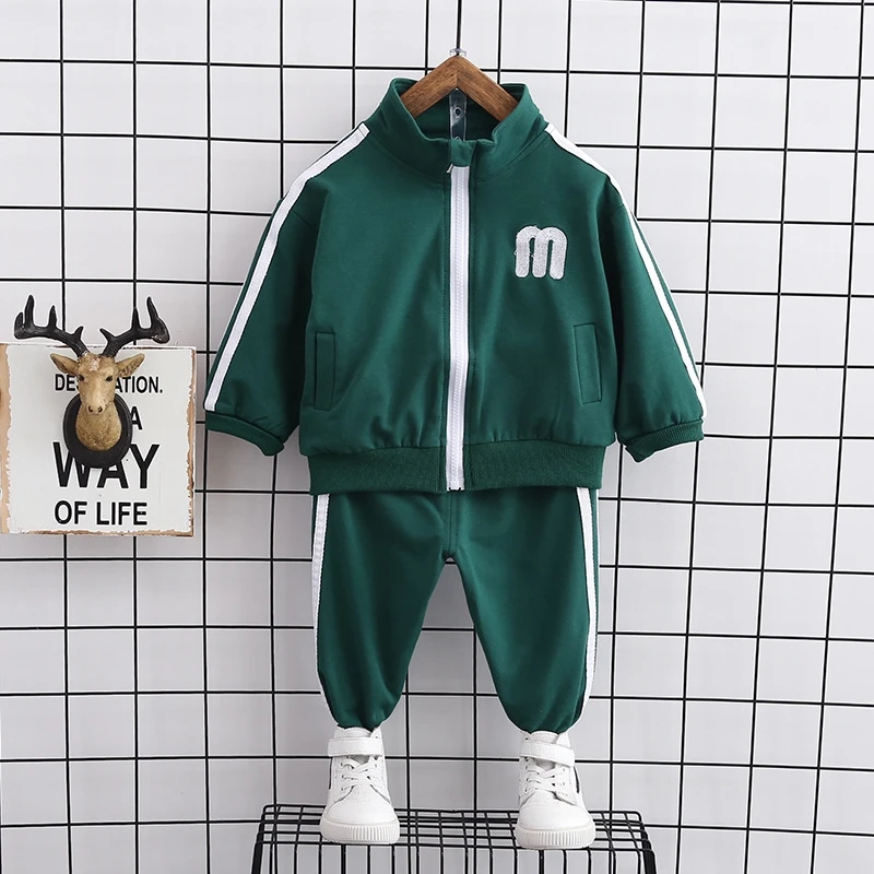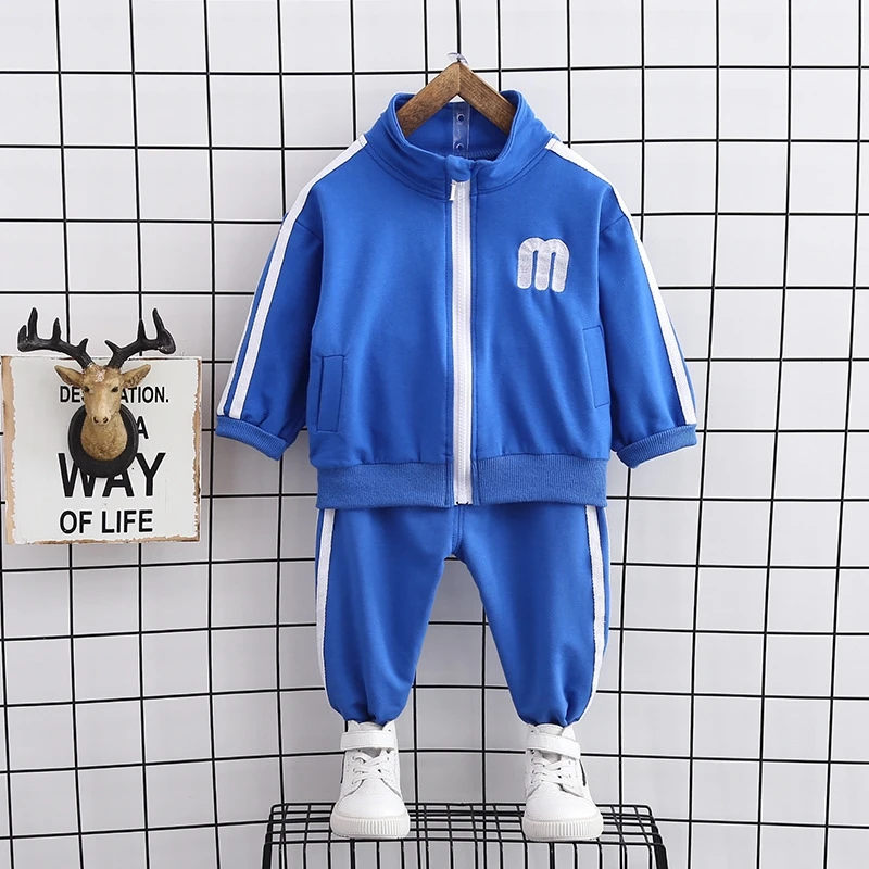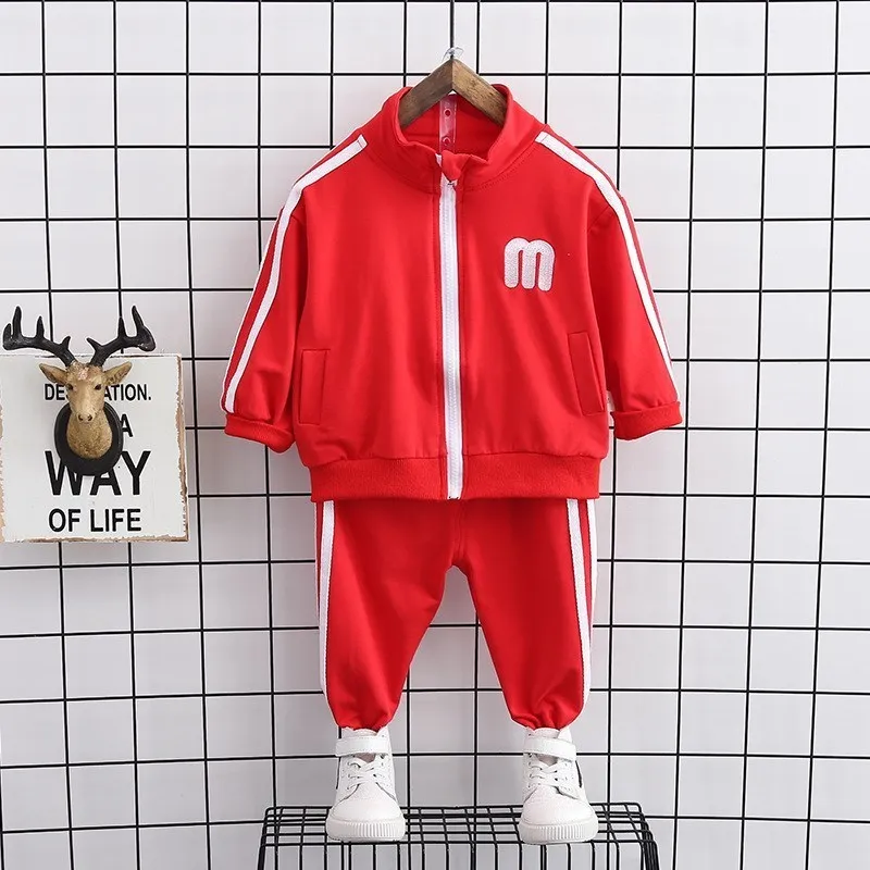 Новый осенний детский модный костюм Детская куртка с капюшоном и надписью для мальчиков и девочек, штаны 2 шт./компл., Весенняя детская повседневная спортивная одежда для От 0 до 4 лет