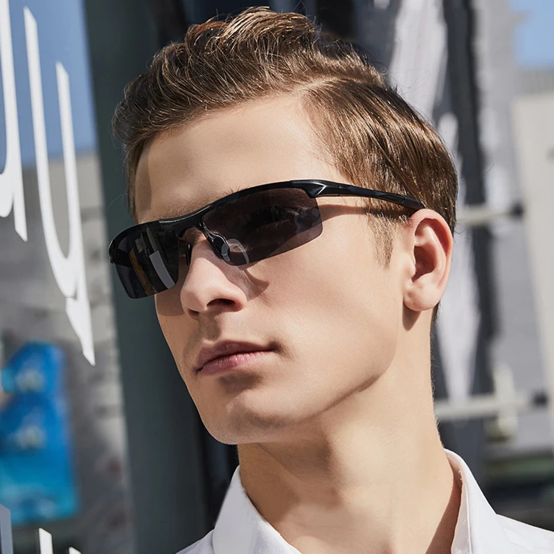 Мужские солнцезащитные очки с алюминиевой оправой поляризационные спортивные - купить