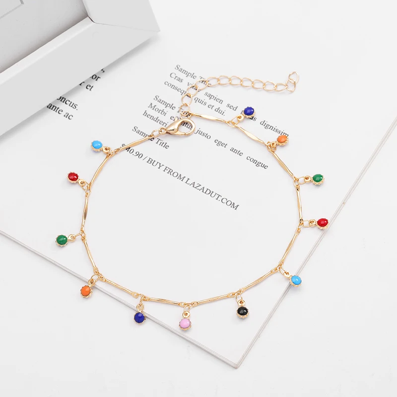 Богемные разноцветные женские ботильоны с цветными бусинами и цепочкой для ног - купить
